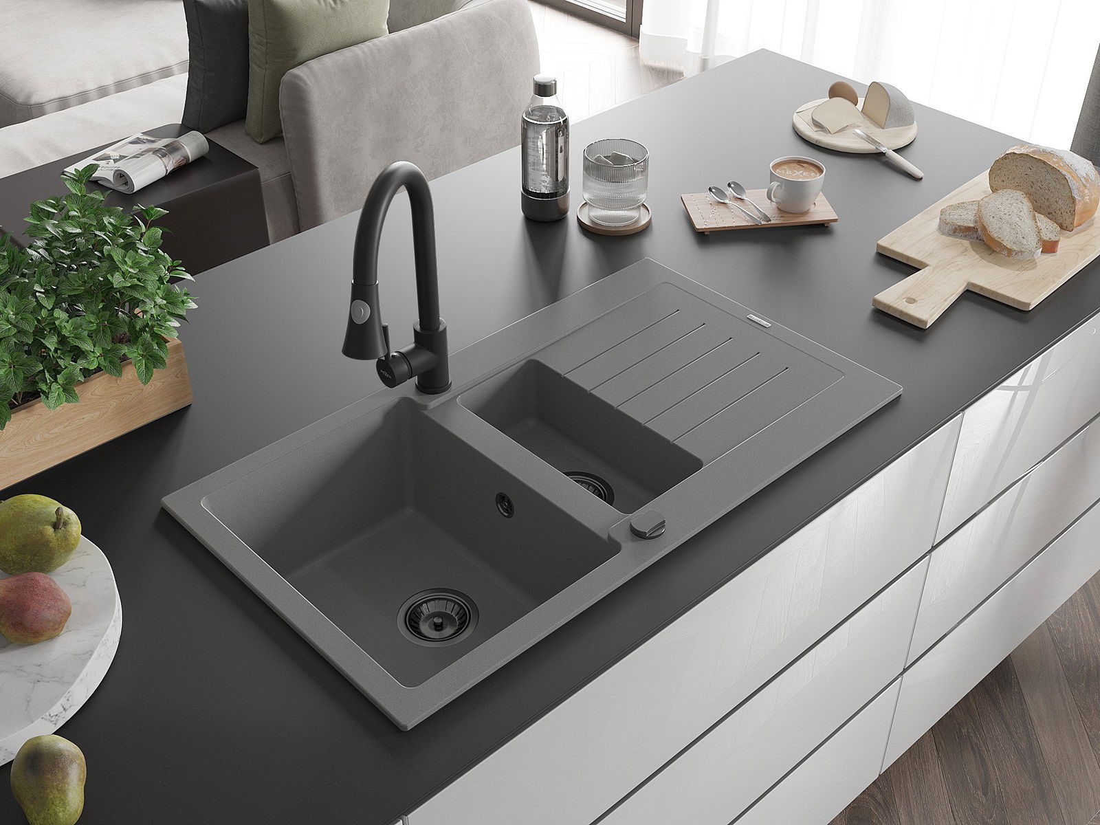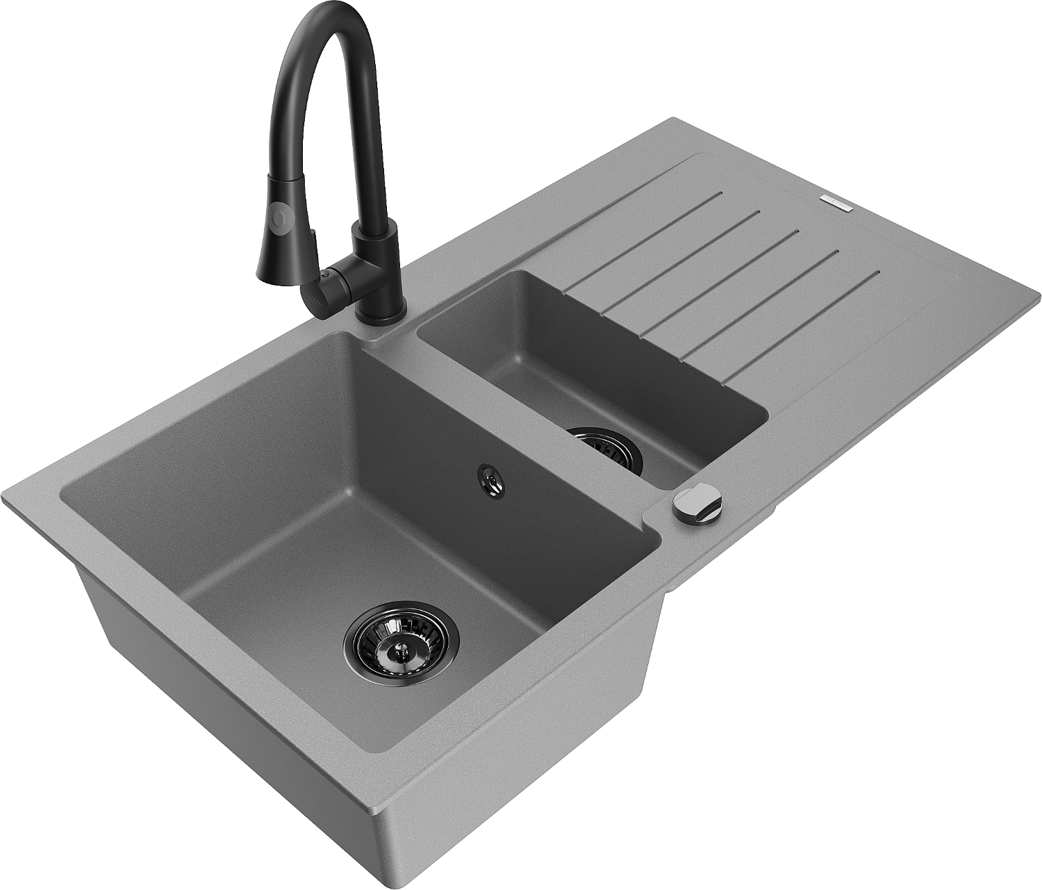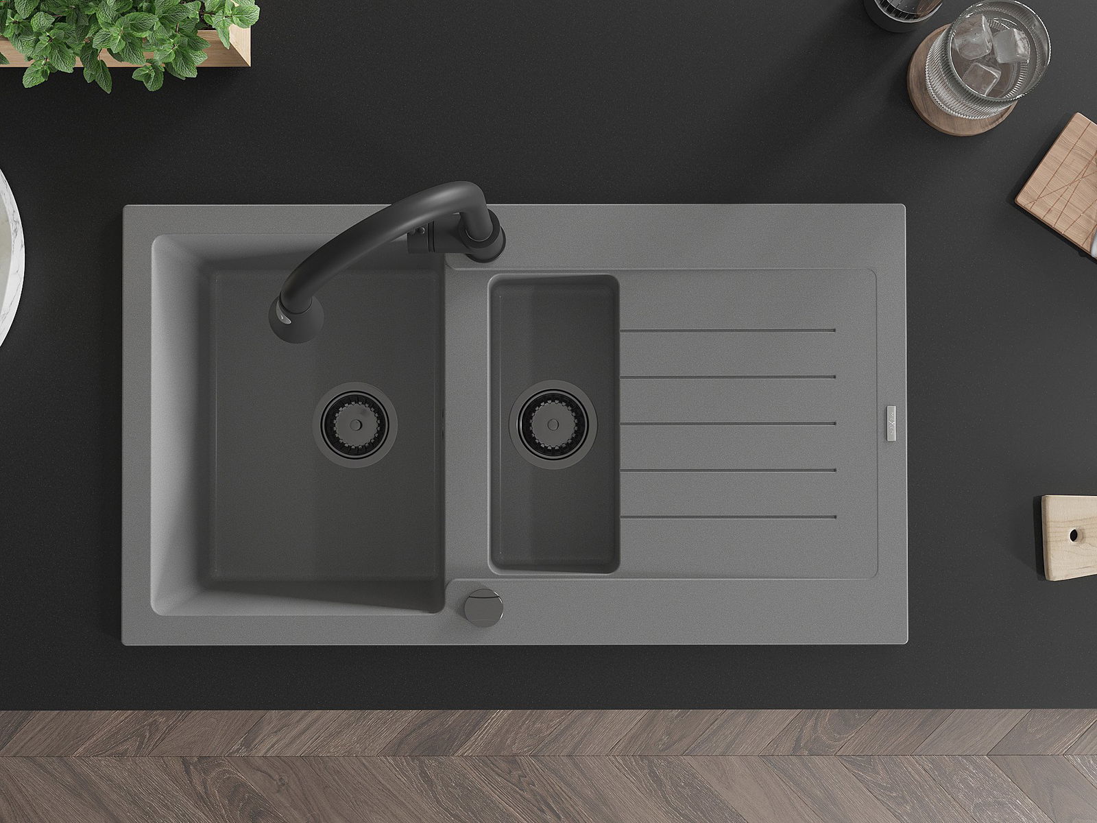 Mexen Matias гранитна мивка със сива кухненска батерия, 1,5 отделение с