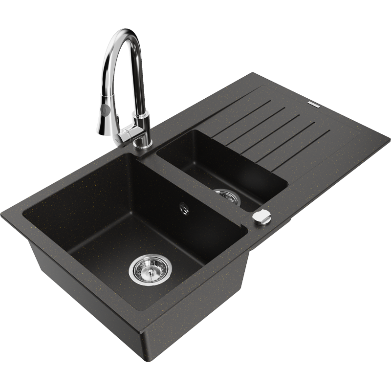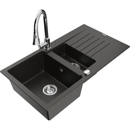 Мивката е направена от висококачествен гранит. Това е елегантно и най -вече практично допълнение към всяка кухня, независимо от нейния стил. Висококачествената и гранитна издръжливост осигуряват много години употреба.