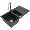 Mexen Matias гранитна мивка 1,5 камери с отцедник и кухненски смесител Elia, черен - 6502-77-670101-00