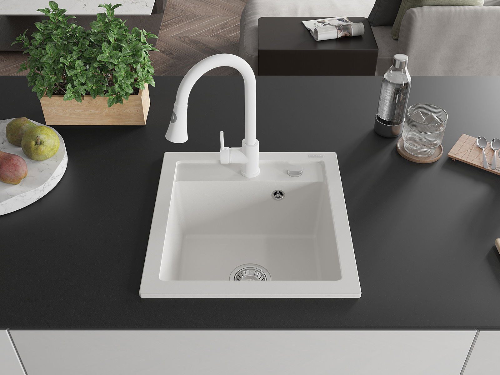 Mexen Vito еднокомпонентна гранитна мивка с кухненски смесител Elia, бял - 6503-20-670101-20