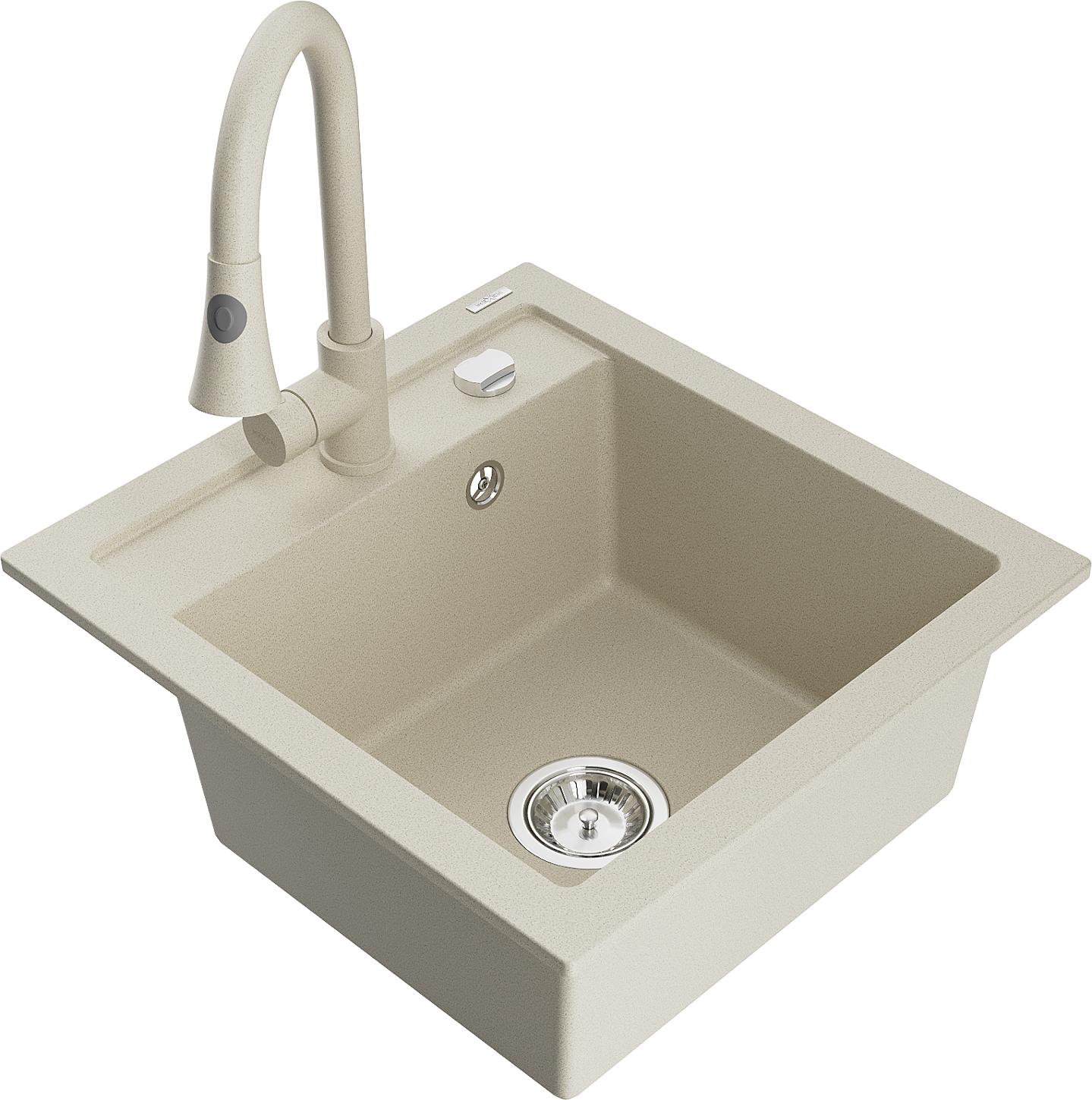 Mexen Vito гранитна кухненска мивка с 1 отделение с кухненски смесител Elia,