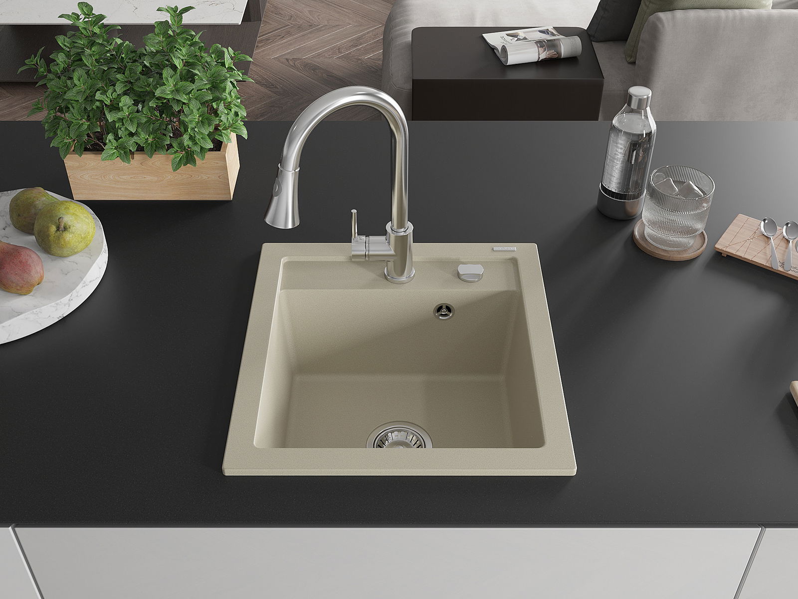 Мивката е направена от висококачествен гранит. Това е елегантно и най -вече практично допълнение към всяка кухня, независимо от нейния стил. Висококачествената и гранитна издръжливост осигуряват много години употреба.