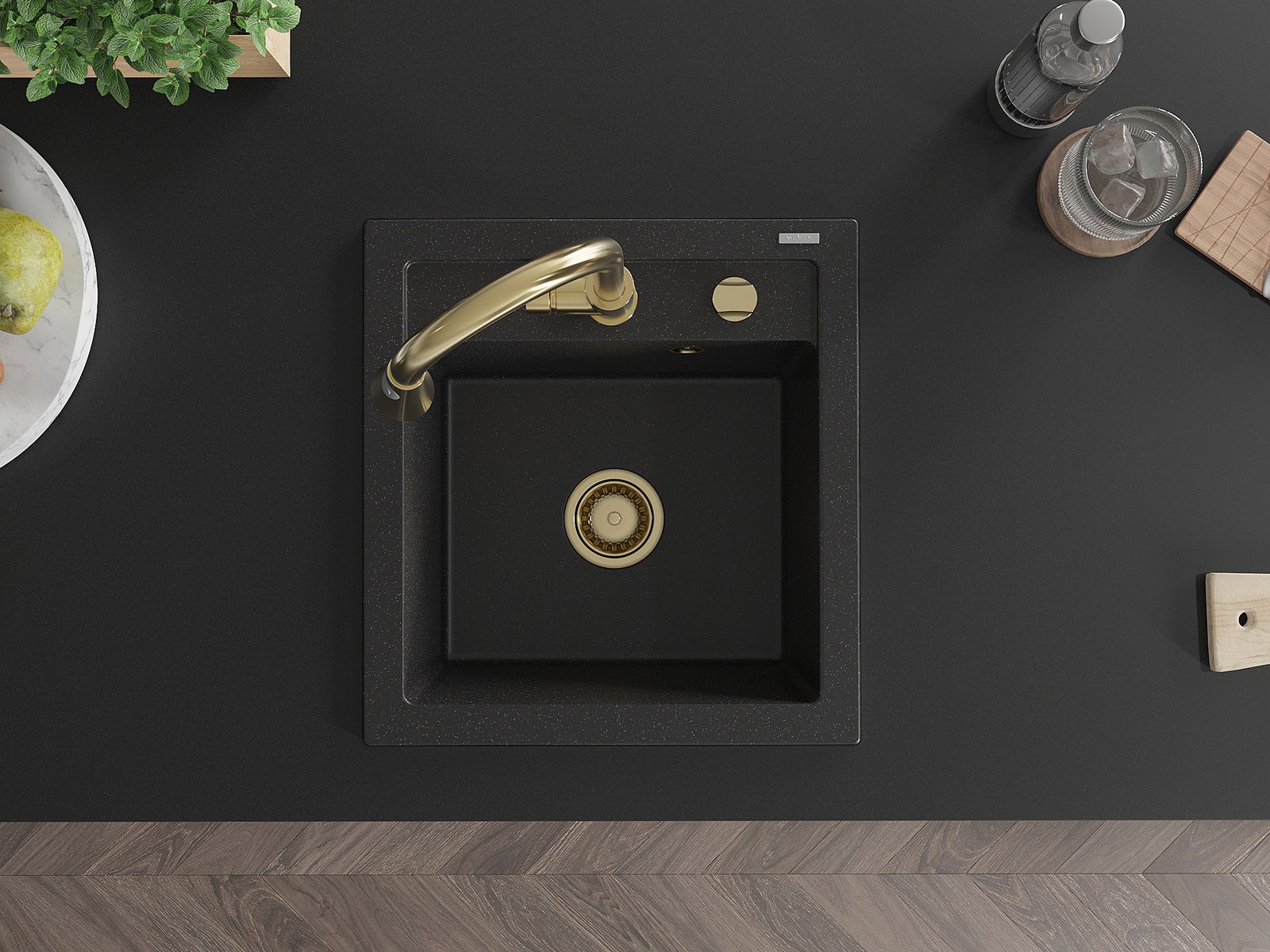 Мивката разполага с предварително издълбан отвор с диаметър 35 мм за самостоятелно изключване. Може да се използва, наред с други неща, за монтаж на дозатор за течност, който ще елиминира наличието на пластмасови бутилки в кухнята и ще й придаде елегантно завършване.