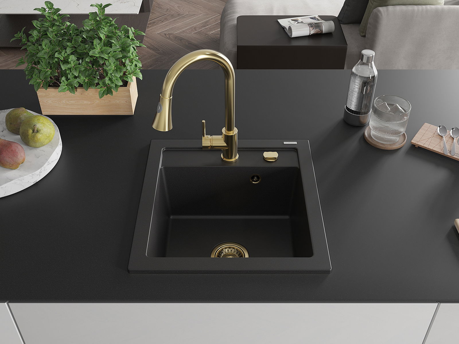 Mexen Vito гранитна кухненска мивка с една камера с кухненски смесител Elia, черен - 6503-77-670101-50