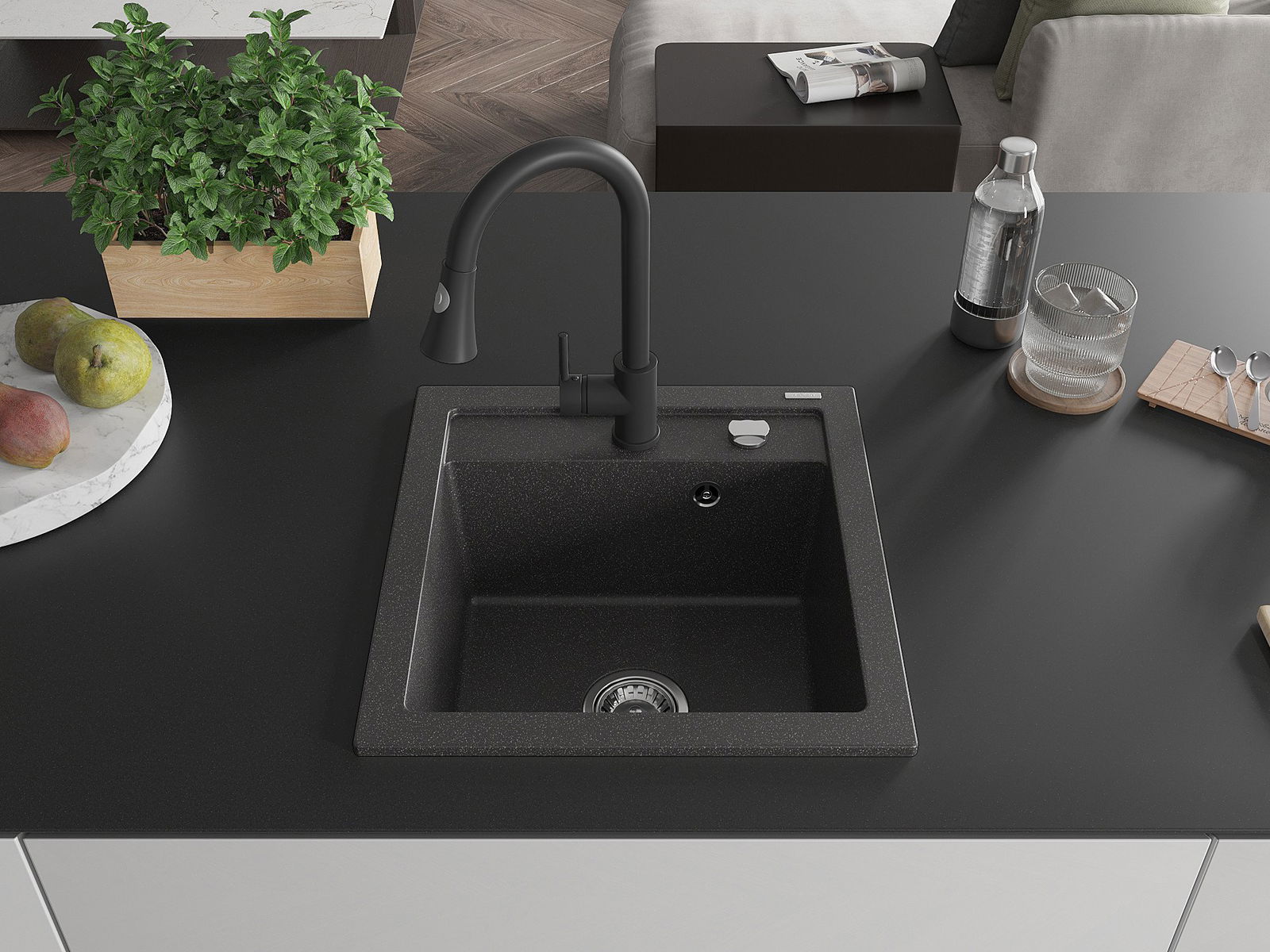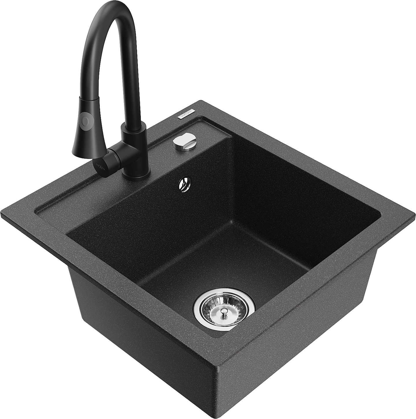 Mexen Vito гранитна мивка с 1 отделение с кухненски смесител Elia, черно на