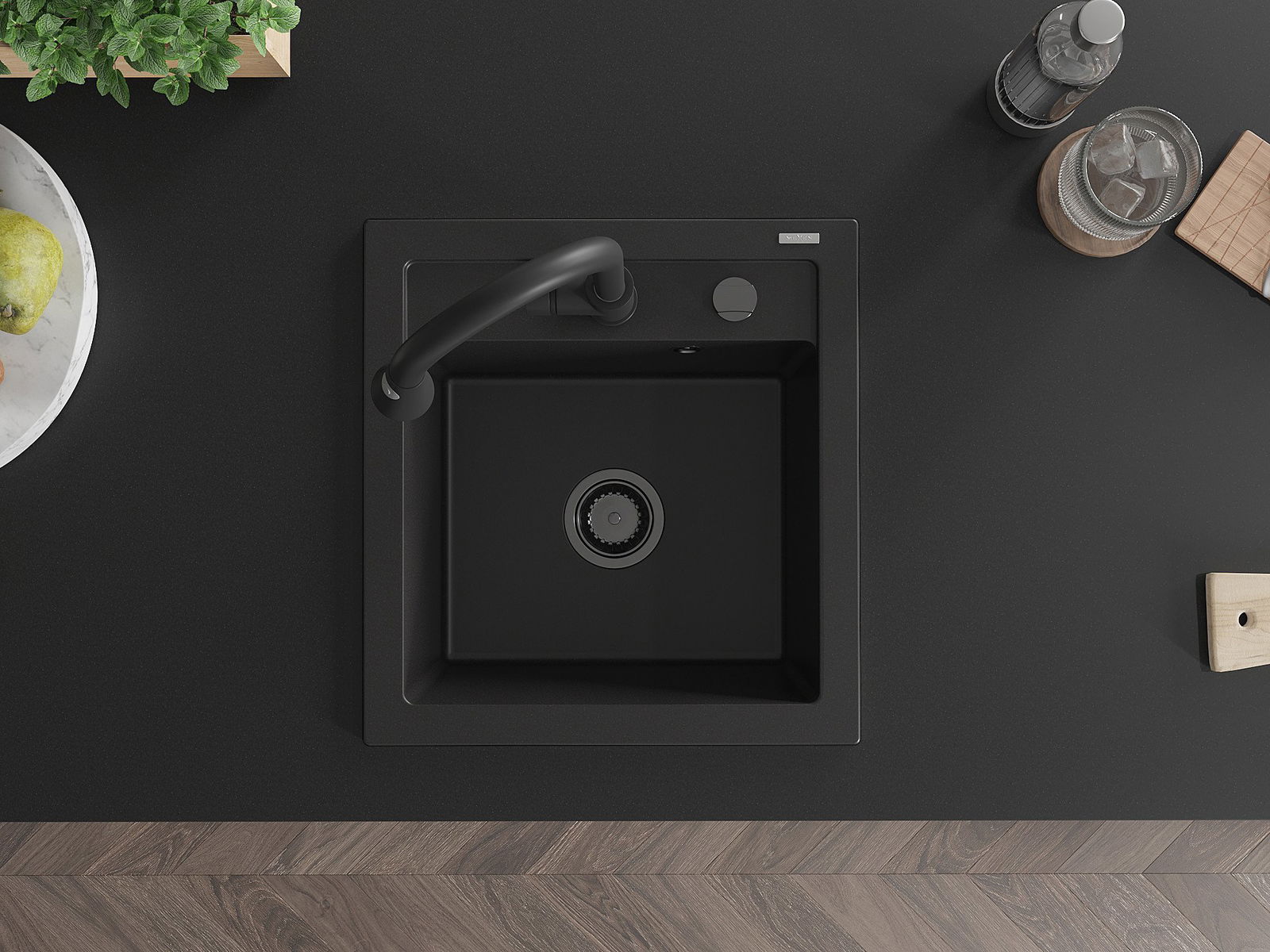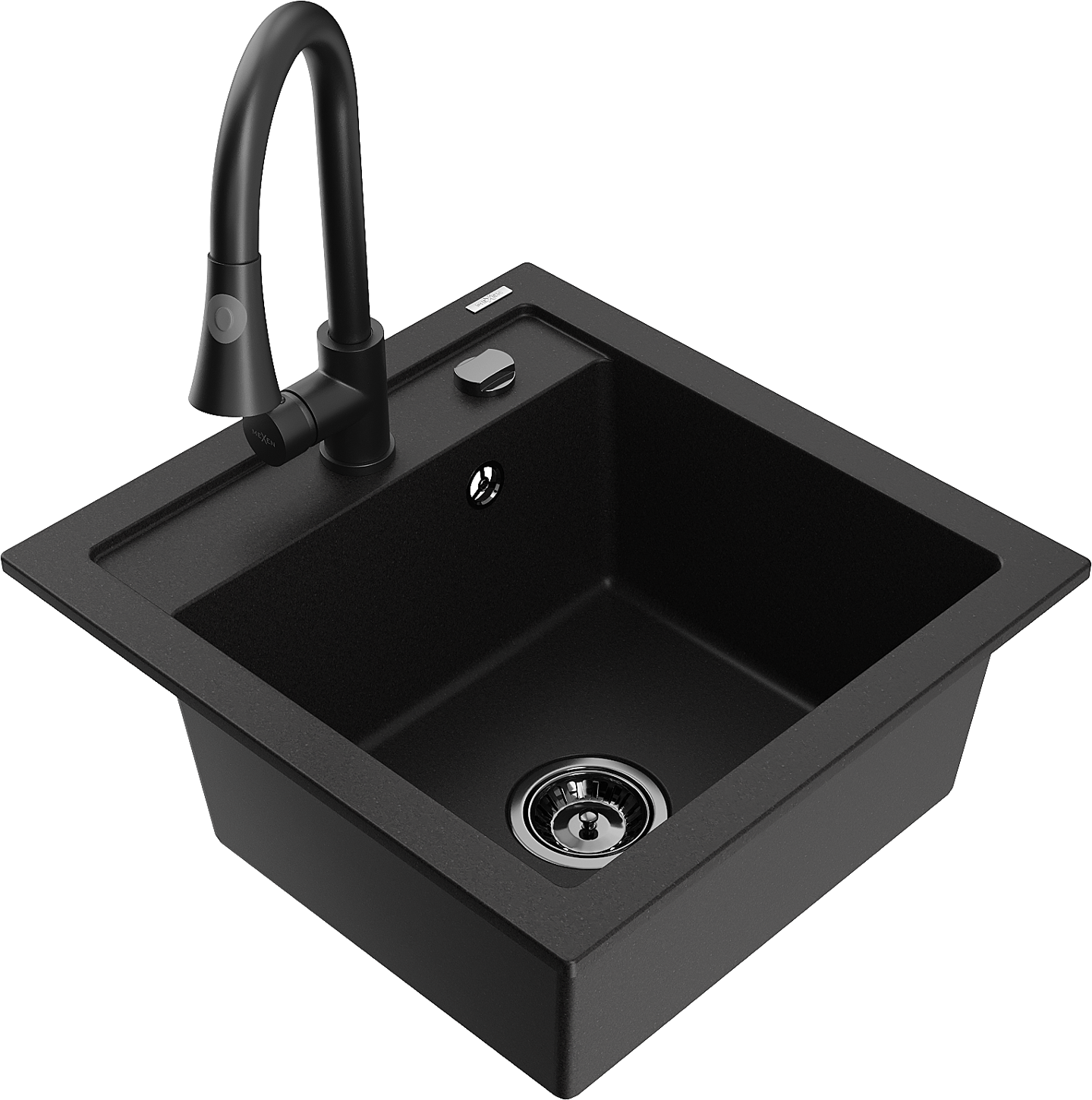 Mexen Vito гранитна мивка 1-камерна с кухненски смесител Elia, черен