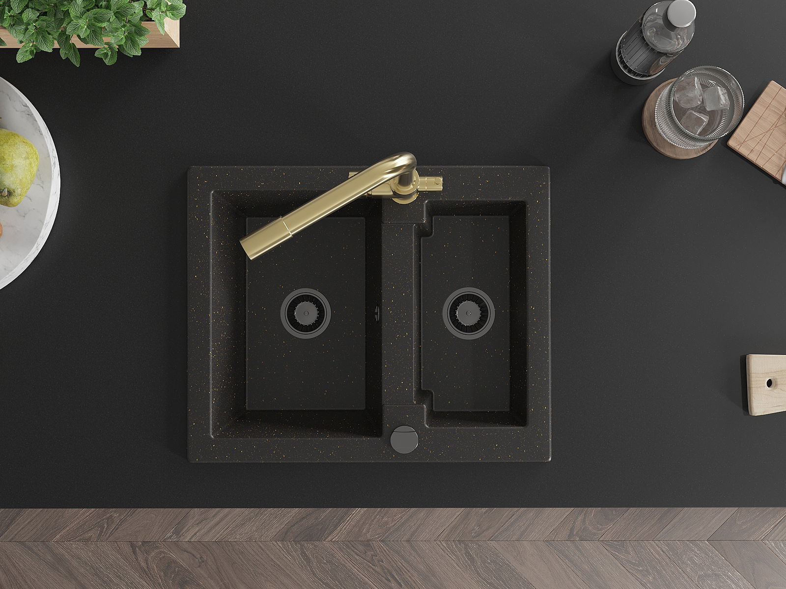 Мивката е направена от висококачествен гранит. Това е елегантно и най -вече практично допълнение към всяка кухня, независимо от нейния стил. Висококачествената и гранитна издръжливост осигуряват много години употреба.
