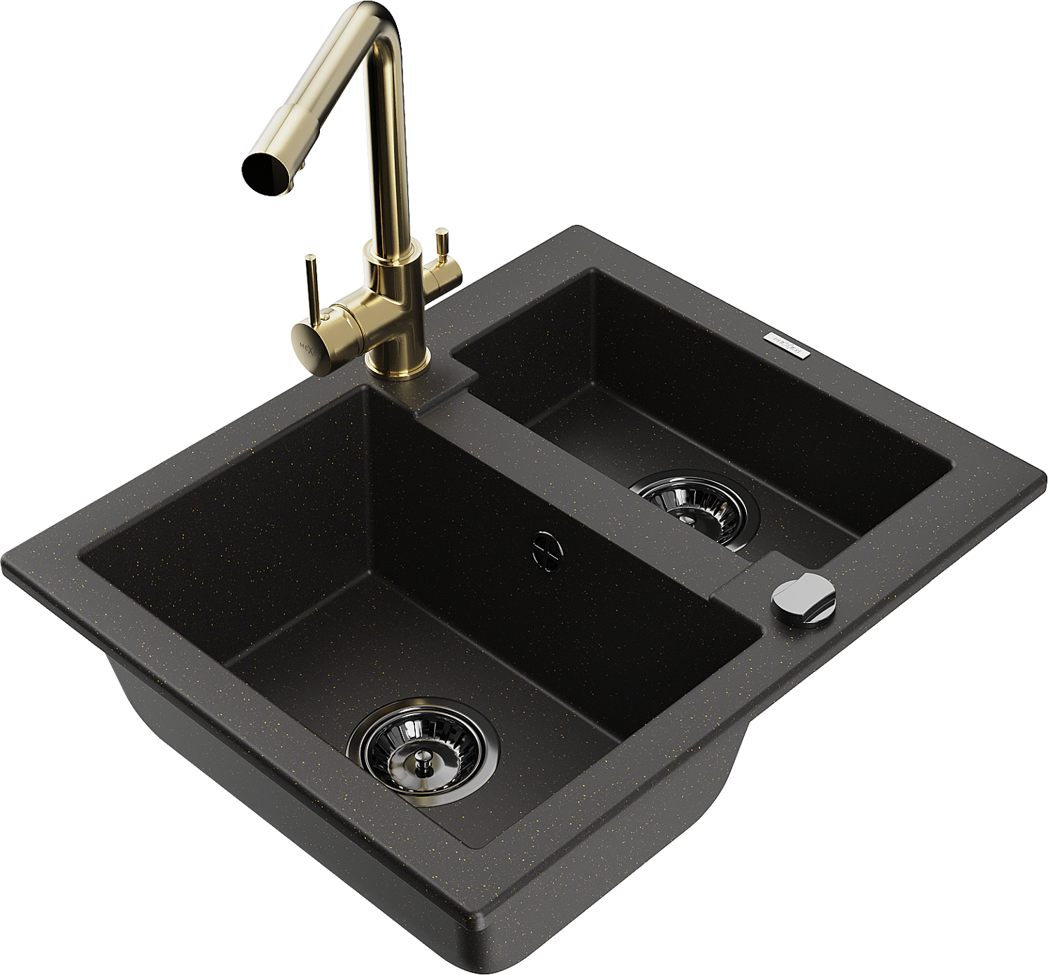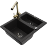 Mexen Carlos гранитна мивка с 1,5 камери с кухненски смесител Duero, черен/златен металик - 6518-75-671600-50-B