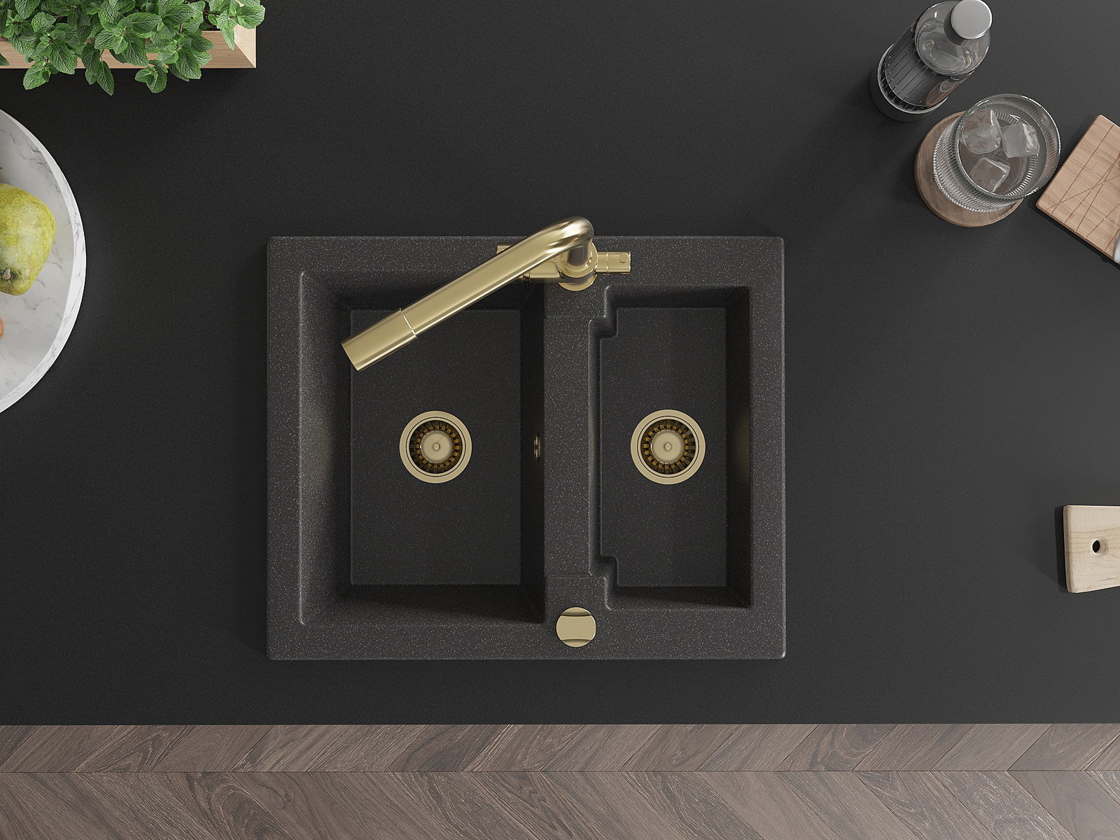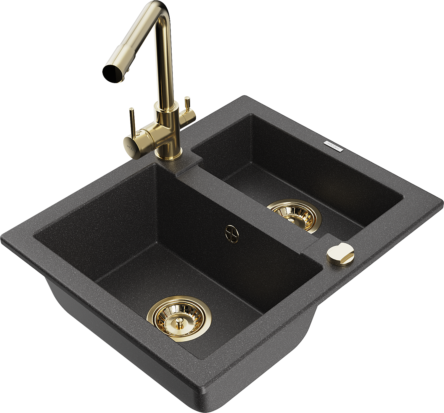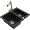 Mexen Carlos гранитна мивка с 1,5 камери с кухненски смесител Duero, черна на