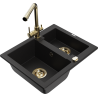 Мивка от гранит Mexen Carlos с 1,5 камери и кухненски смесител Duero, черен на петна - 6518-76-671600-50