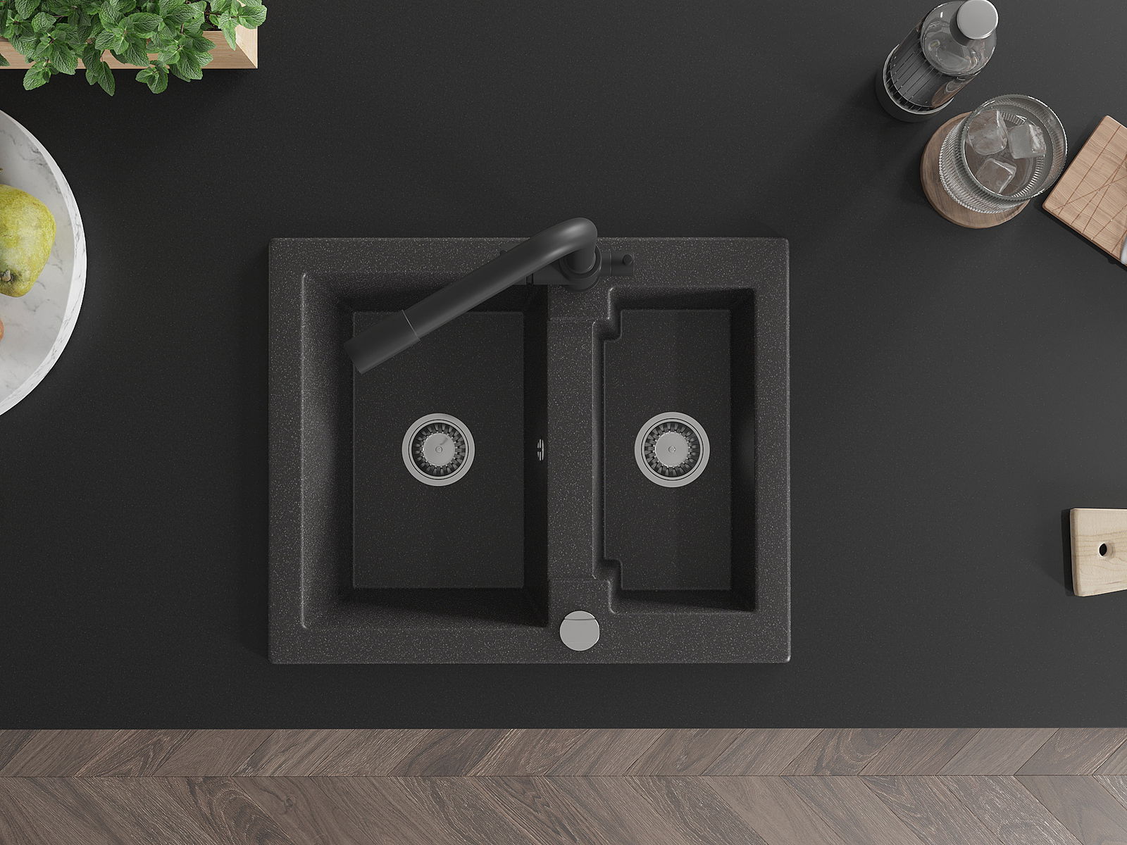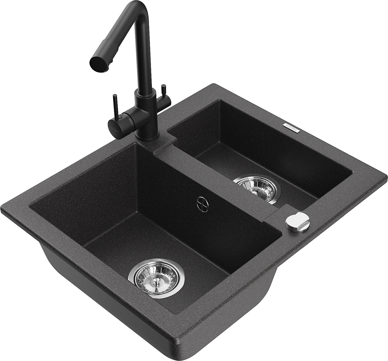 Mexen Carlos гранитна мивка с 1,5 камери с кухненски смесител Duero, черен с
