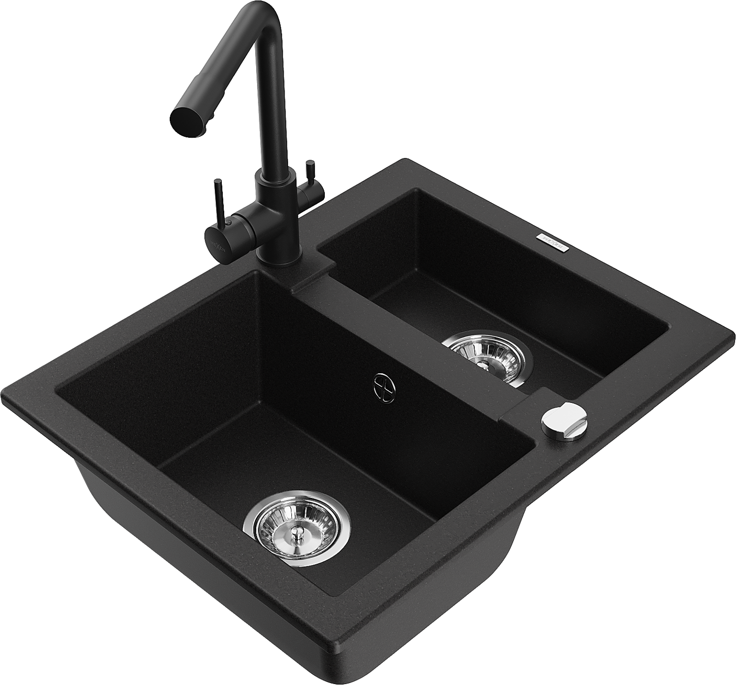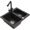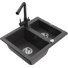 Mexen Carlos гранитна мивка с 1,5 корита с кухненски смесител Duero, черна