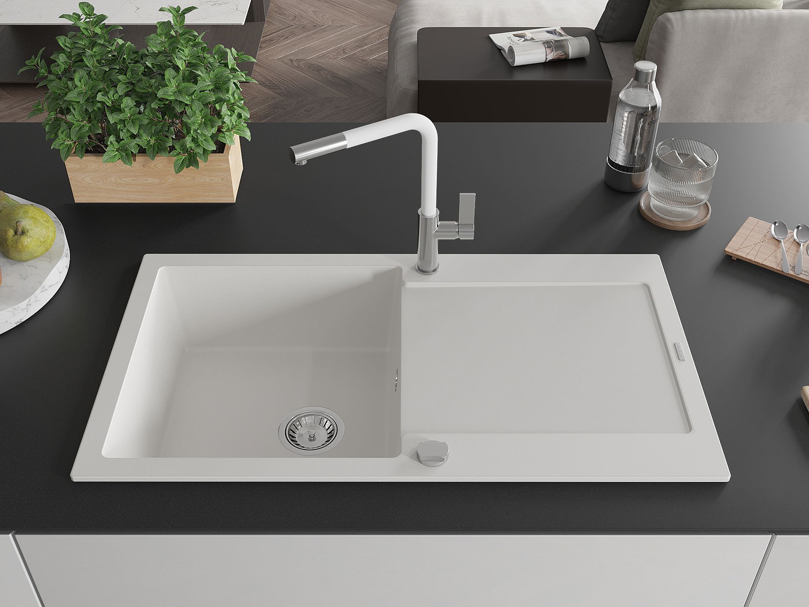 Повърхността на мивката е устойчива на петна и обезцветяване, благодарение на които е лесно да се почиства и запазва цвета си за дълго време. Естетически и практически допълващи всяка кухня.