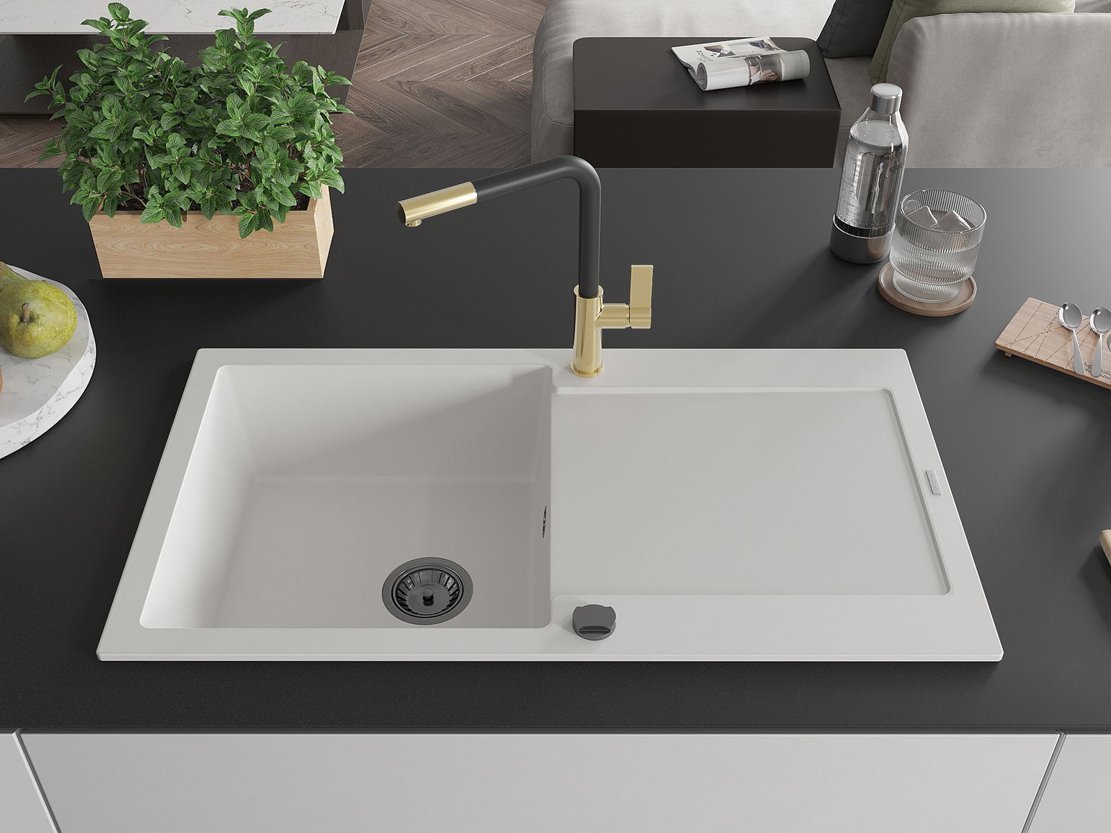 Повърхността на мивката е устойчива на петна и обезцветяване, благодарение на които е лесно да се почиства и запазва цвета си за дълго време. Естетически и практически допълващи всяка кухня.