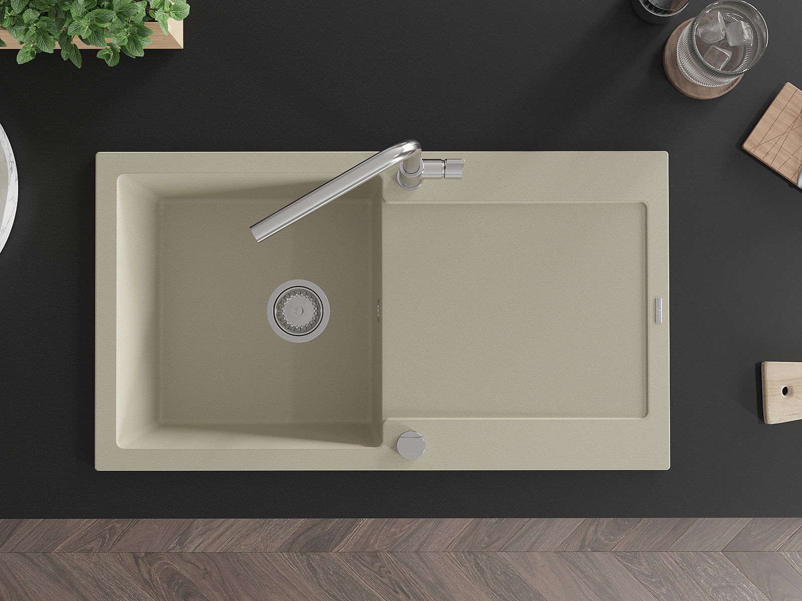 Повърхността на мивката е устойчива на петна и обезцветяване, благодарение на които е лесно да се почиства и запазва цвета си за дълго време. Естетически и практически допълващи всяка кухня.
