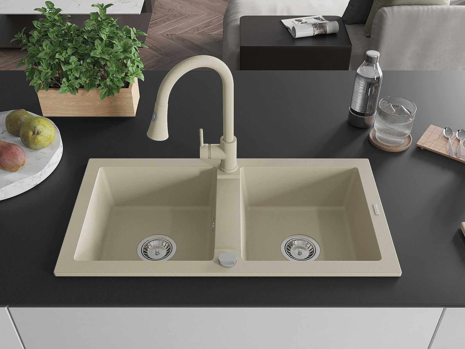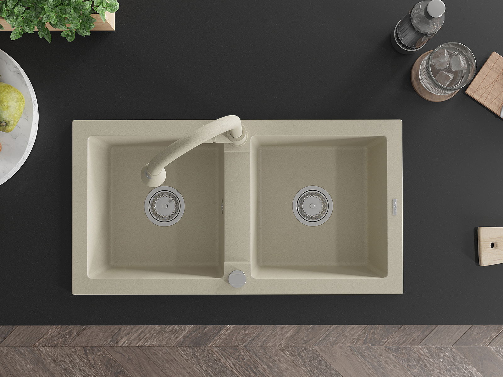Повърхността на мивката е устойчива на петна и обезцветяване, благодарение на които е лесно да се почиства и запазва цвета си за дълго време. Естетически и практически допълващи всяка кухня.