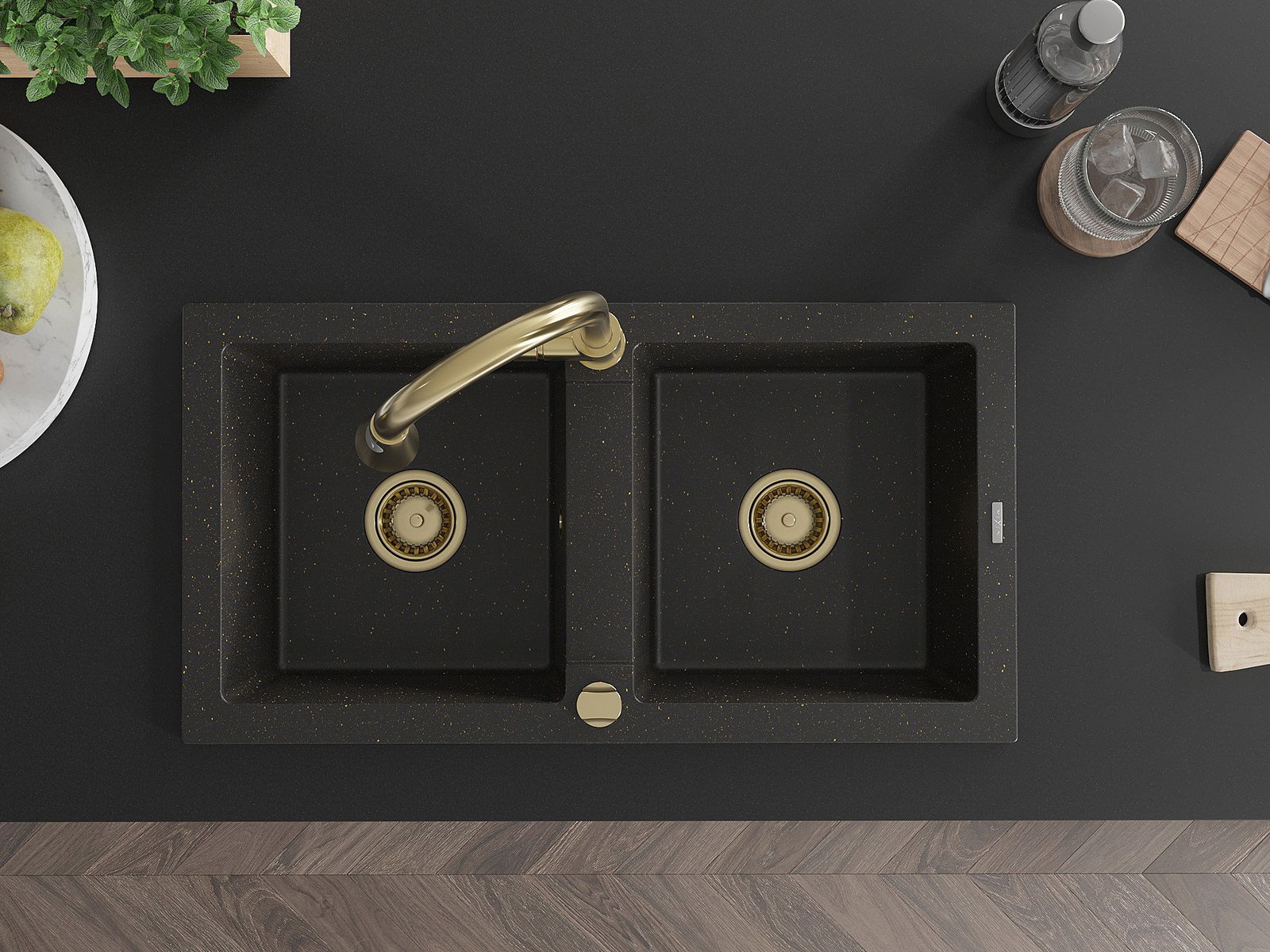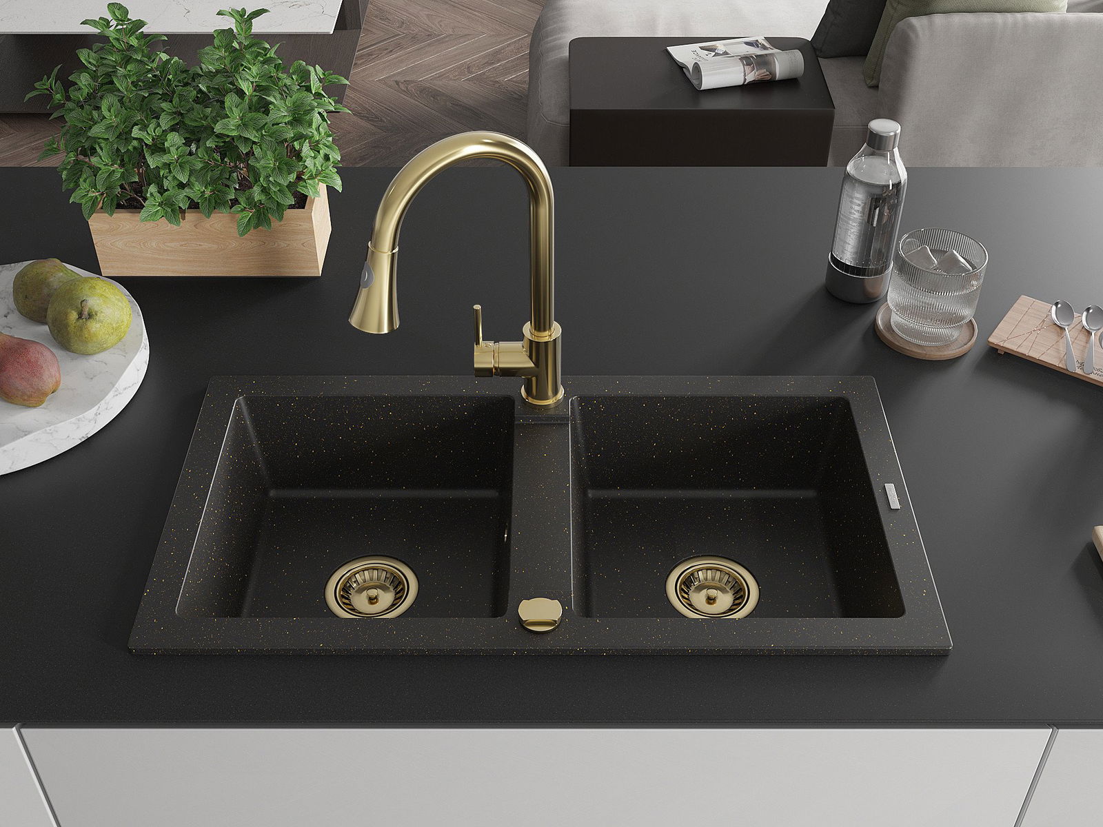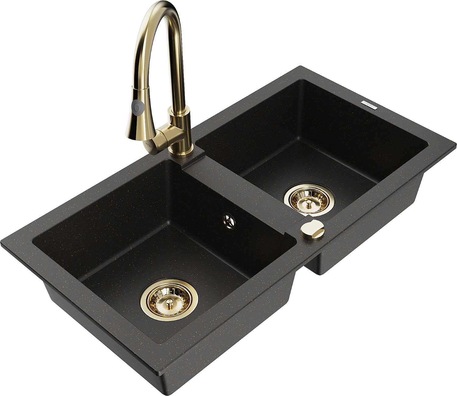 Mexen Mario гранитна кухненска мивка с 2 отделения с кухненски смесител Elia,