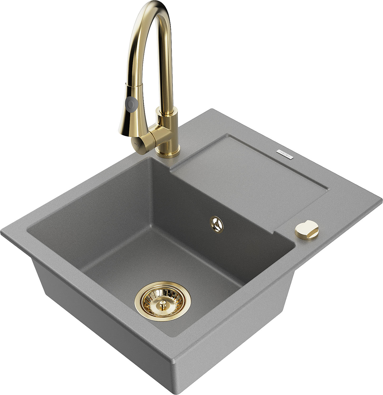 Mexen Enzo гранитна мивка с 1 отделение с отцеждател и кухненски смесител Elia, сив - 6506-71-670101-50