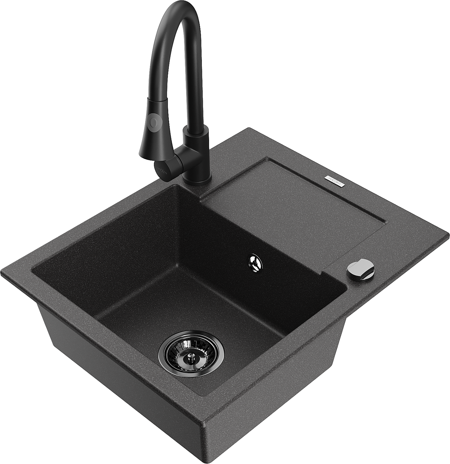 Mexen Enzo кухненска мивка гранитна с 1 отделение с отцедник и кухненски смесител Elia, черен на петна - 6506-76-670101-70-B