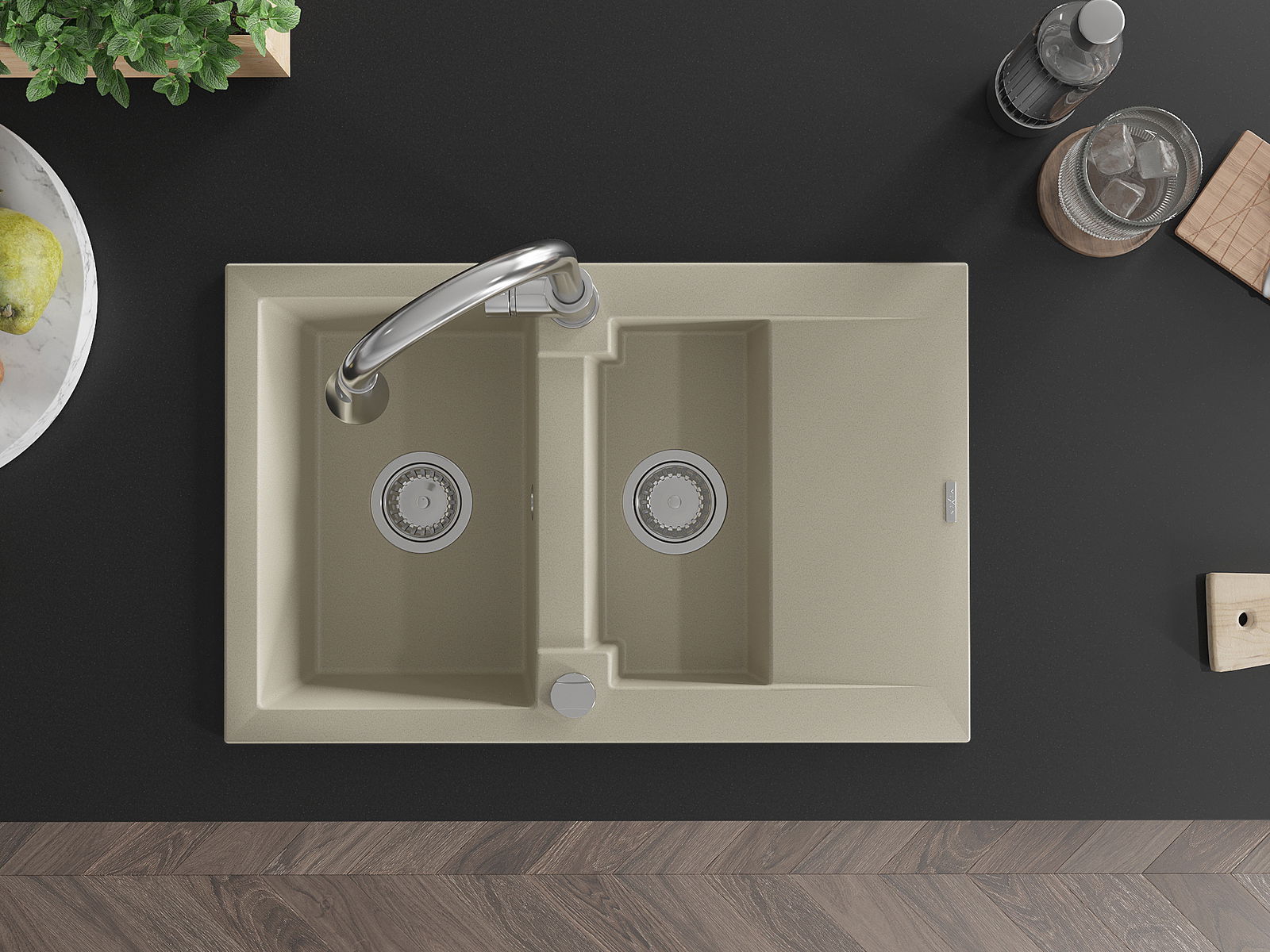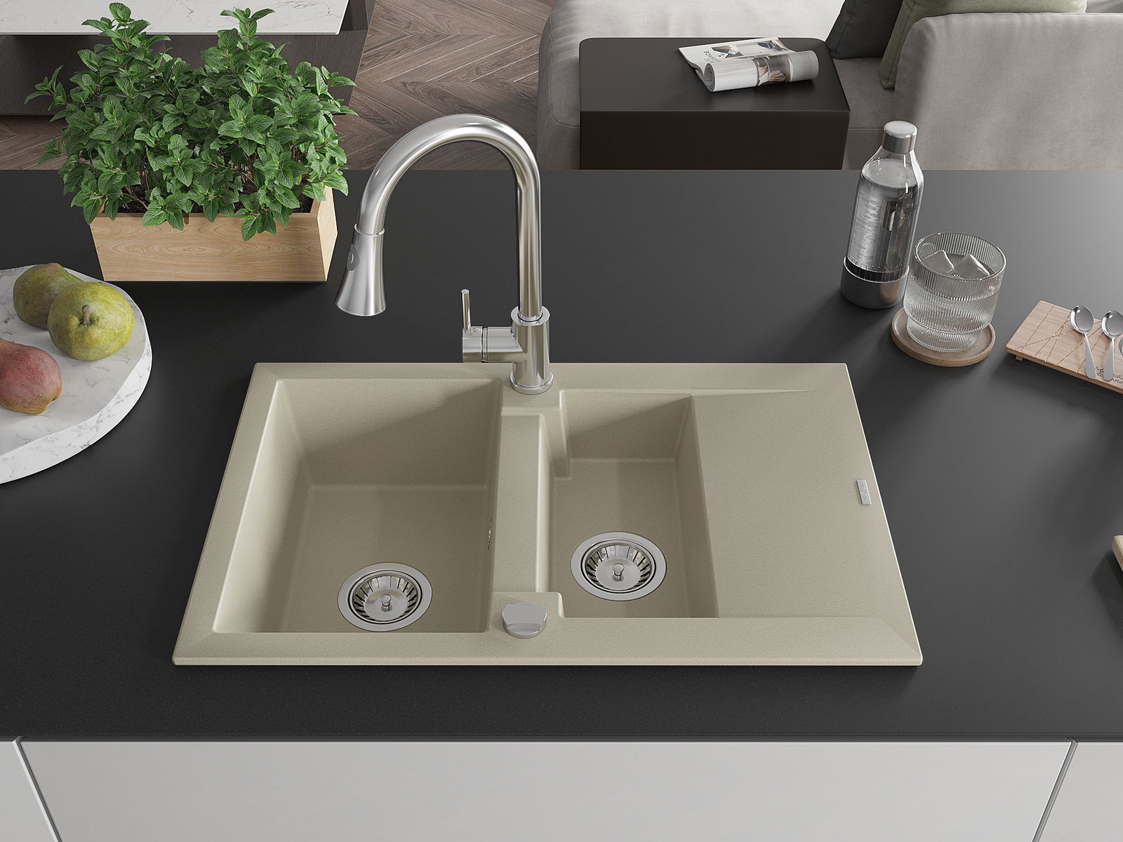Повърхността на мивката е устойчива на петна и обезцветяване, благодарение на които е лесно да се почиства и запазва цвета си за дълго време. Естетически и практически допълващи всяка кухня.