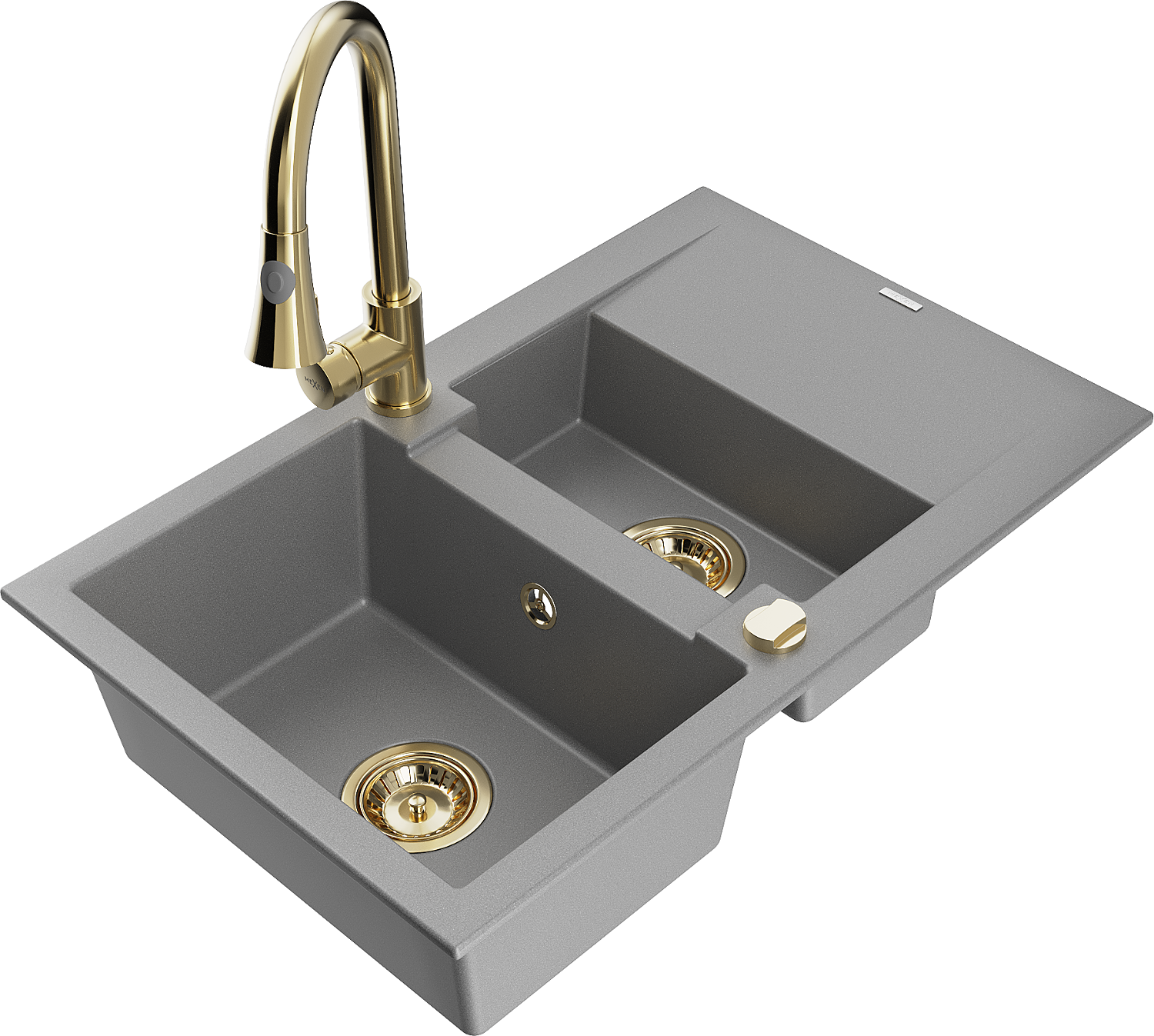 Mexen Gaspar гранитна мивка 1,5 камери със сушилник и кухненски смесител Elia, сив - 6507-71-670101-50