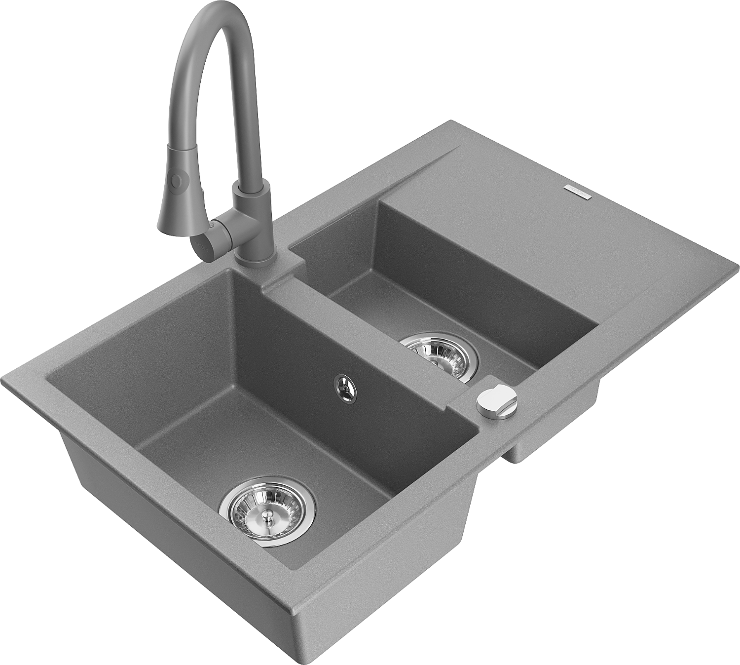 Mexen Gaspar гранитна мивка с 1,5 камери с отцеждащ се и кухненски смесител Elia, сив - 6507-71-670101-71