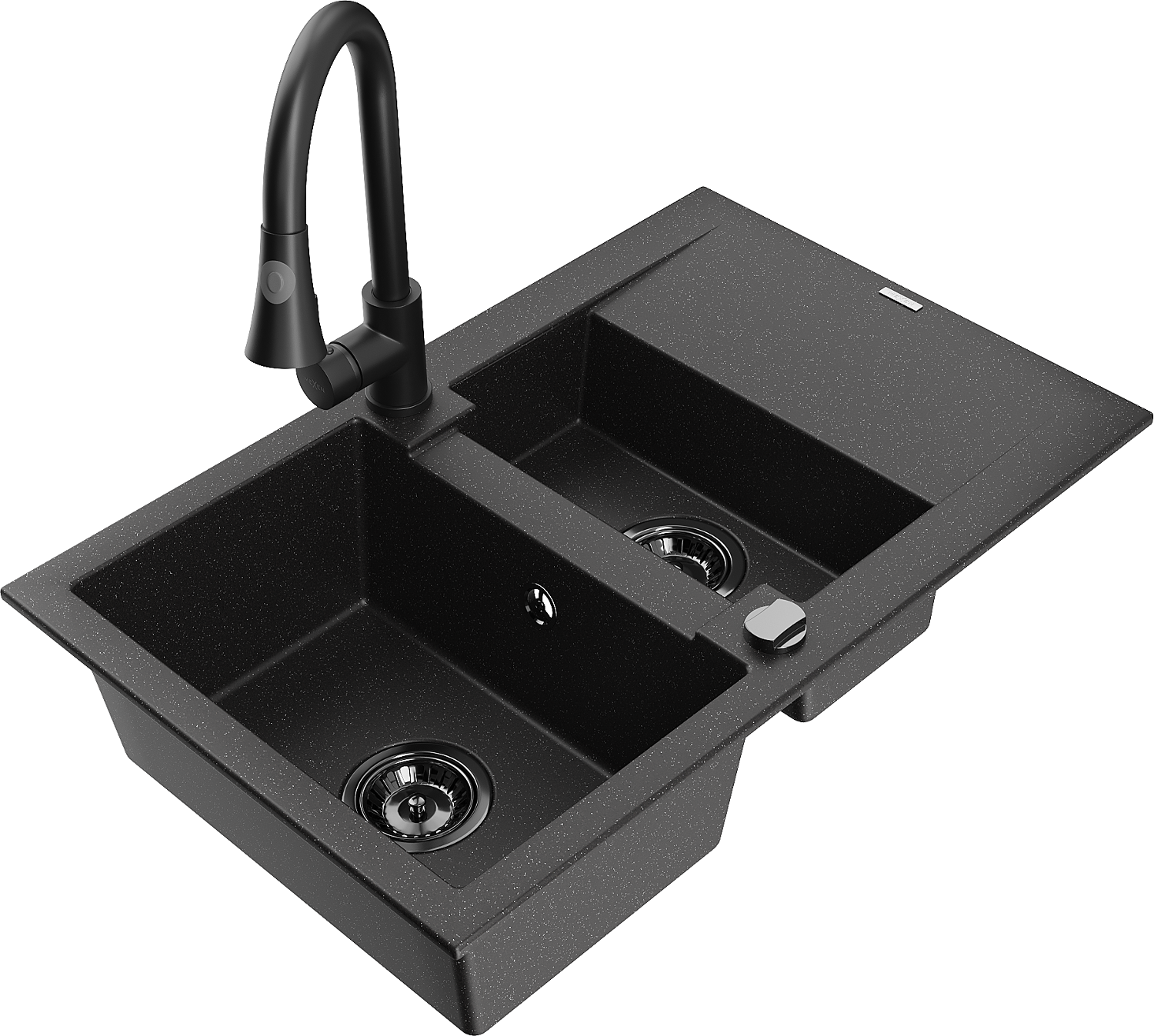 Mexen Gaspar гранитна мивка с 1,5 камери с отцедник и кухненски смесител Elia,