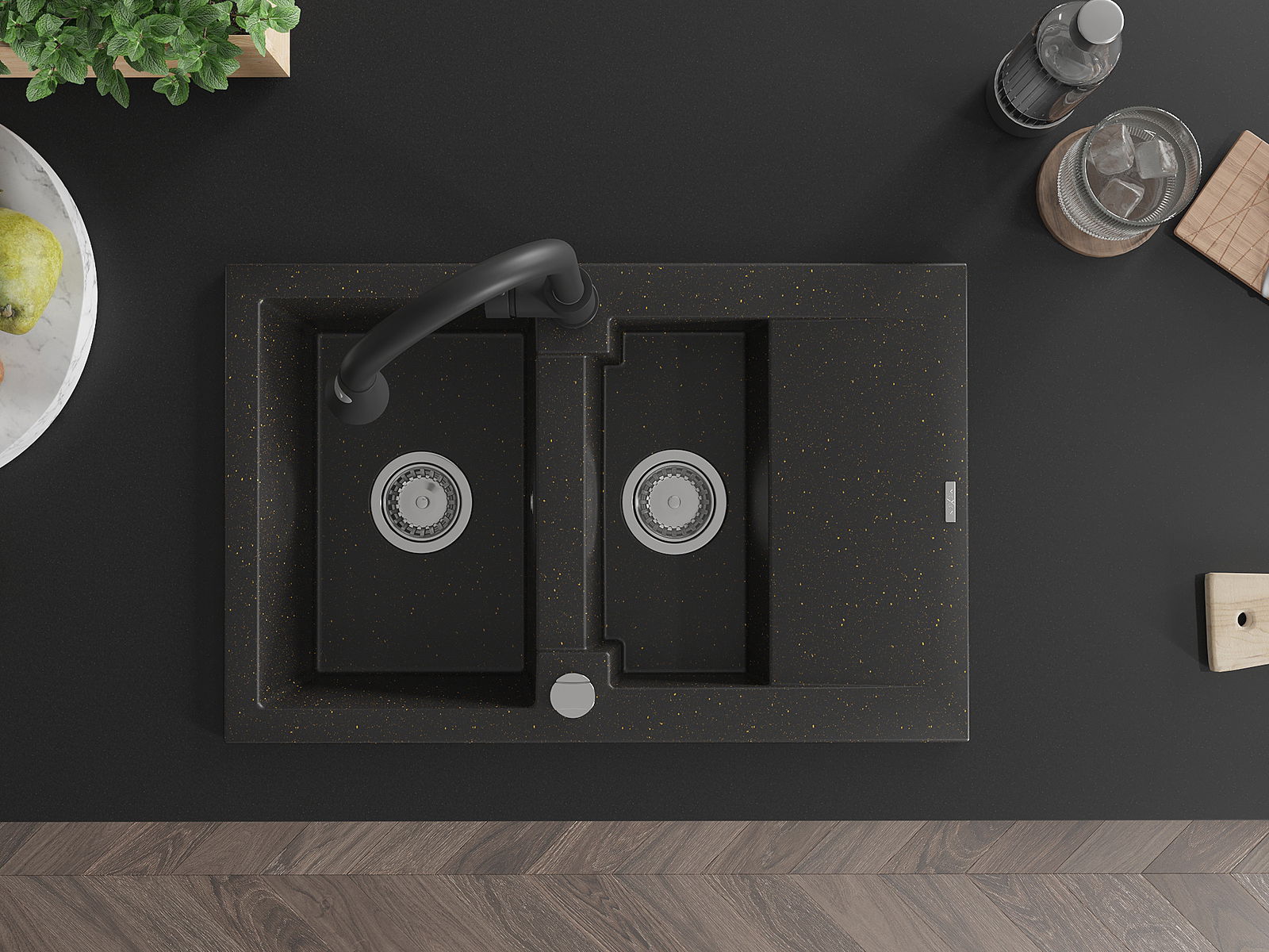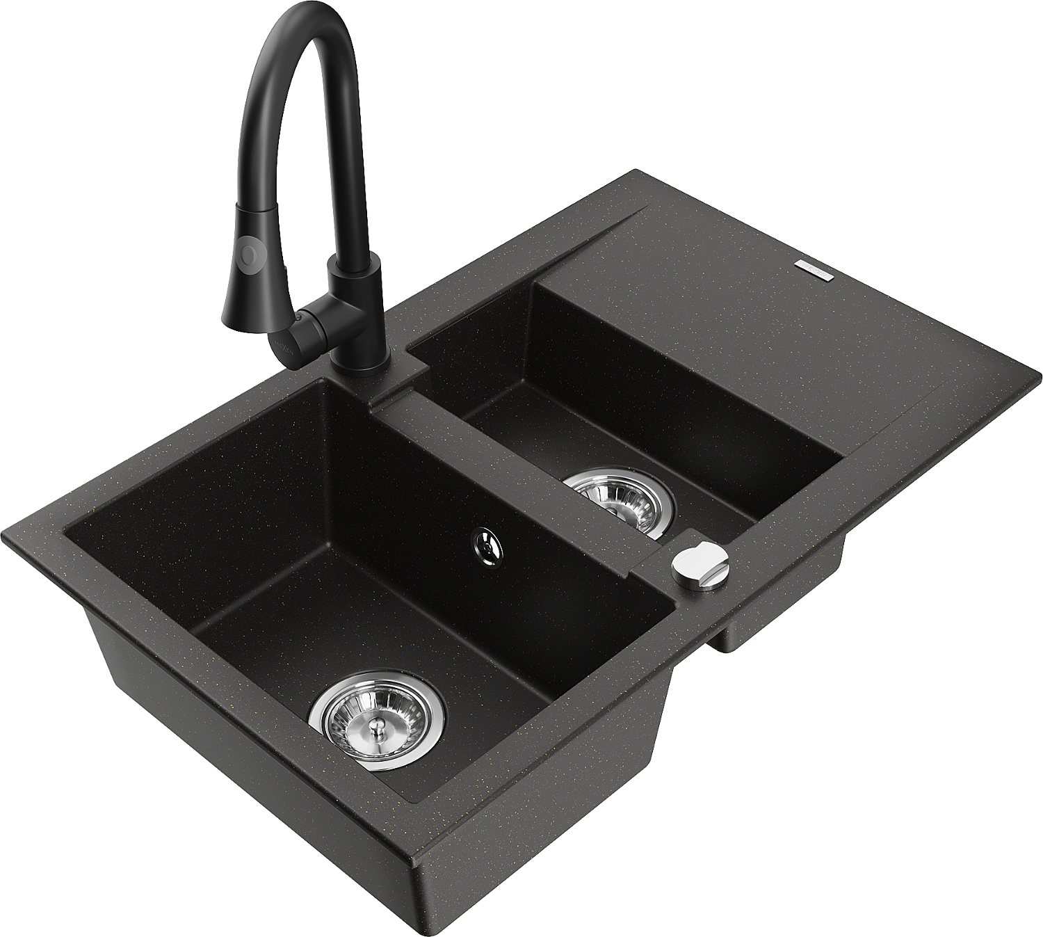 Mexen Gaspar гранитна мивка 1,5-камерна с отцедник и кухненски смесител Elia,