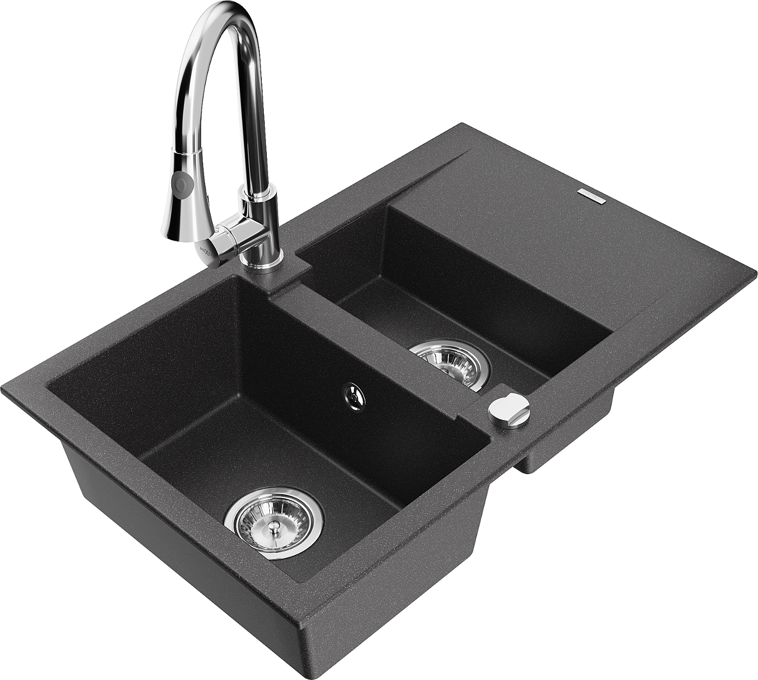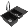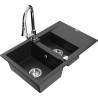 Mexen Gaspar гранитна мивка 1,5-камерна с отцеждател и кухненски смесител Elia, черен на пръски - 6507-76-670101-00