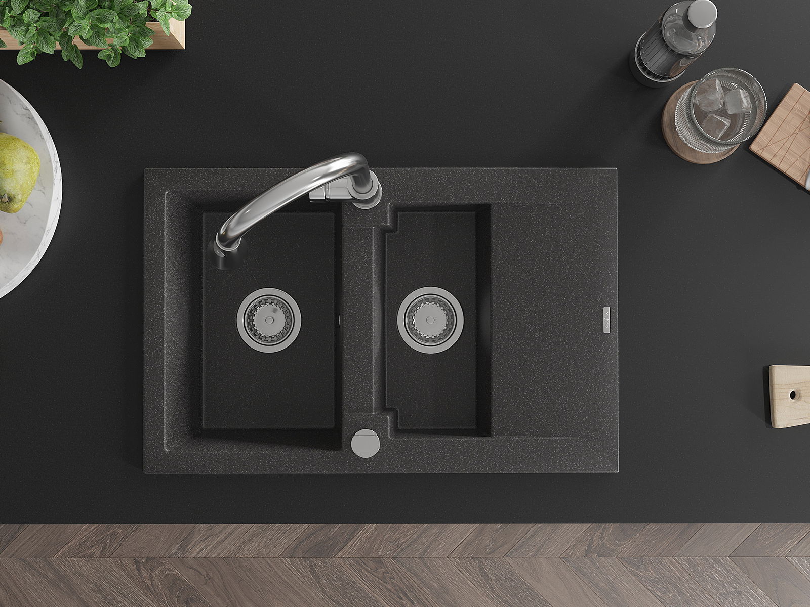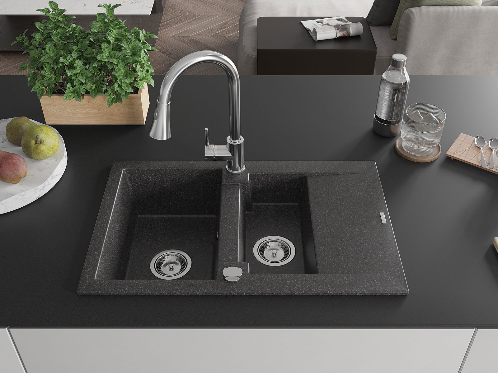 Мивката е направена от висококачествен гранит. Това е елегантно и най -вече практично допълнение към всяка кухня, независимо от нейния стил. Висококачествената и гранитна издръжливост осигуряват много години употреба.
