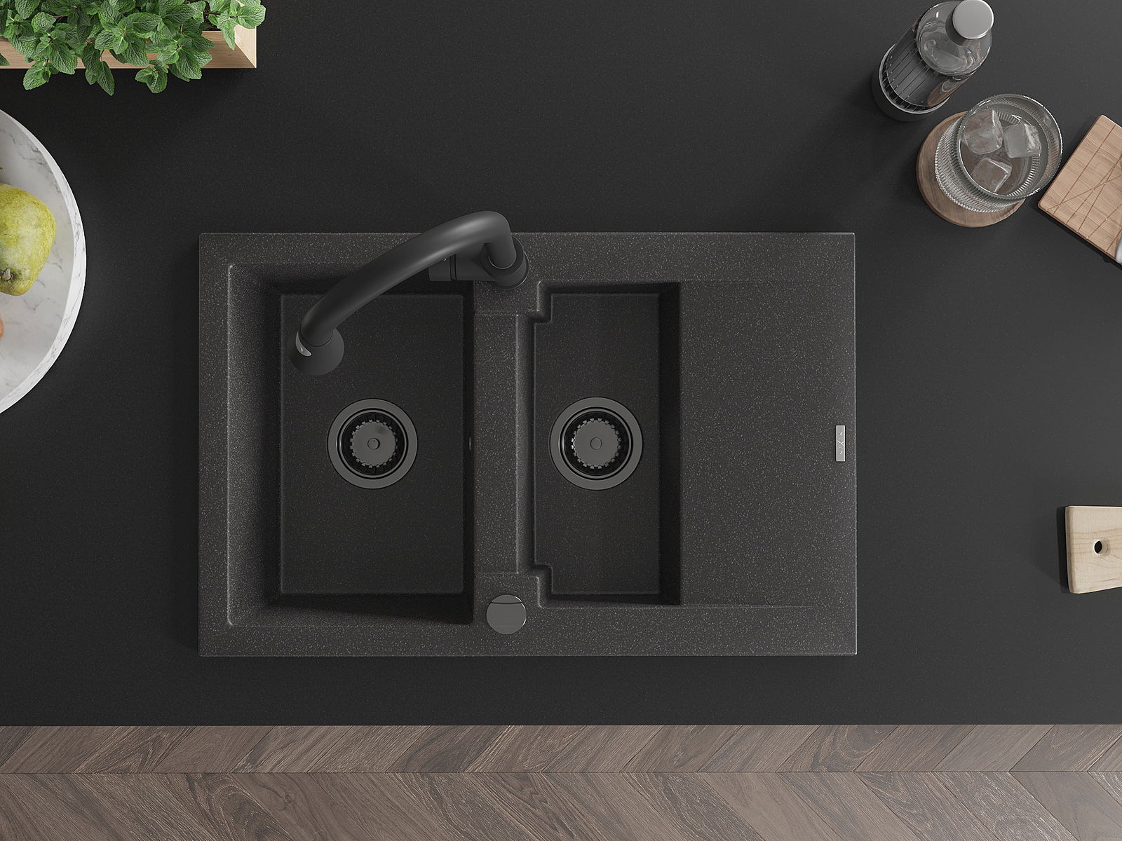 Мивката е направена от висококачествен гранит. Това е елегантно и най -вече практично допълнение към всяка кухня, независимо от нейния стил. Висококачествената и гранитна издръжливост осигуряват много години употреба.