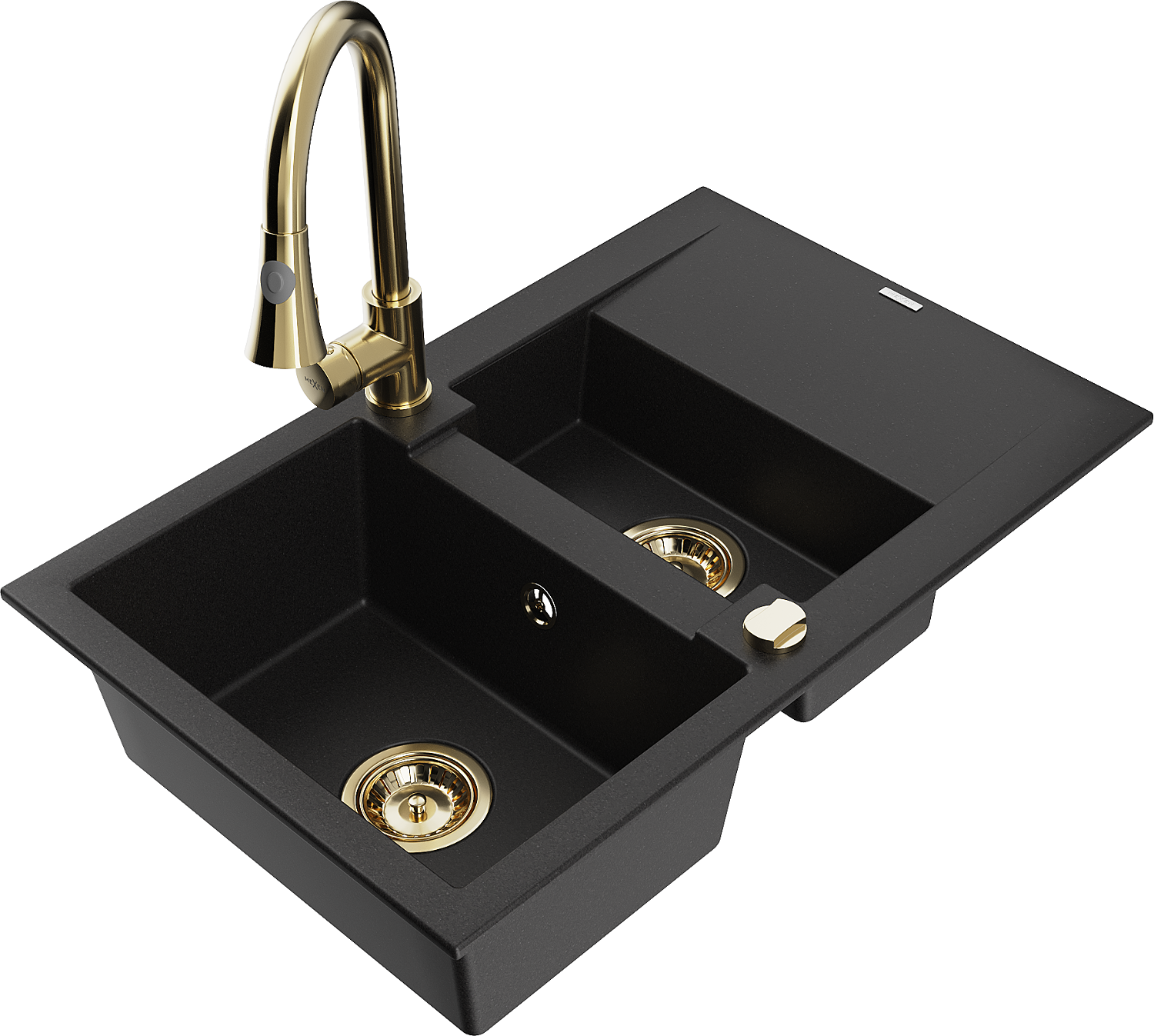 Mexen Gaspar гранитна мивка с 1,5 камери с отцедник и кухненски смесител Elia, черен - 6507-77-670101-50