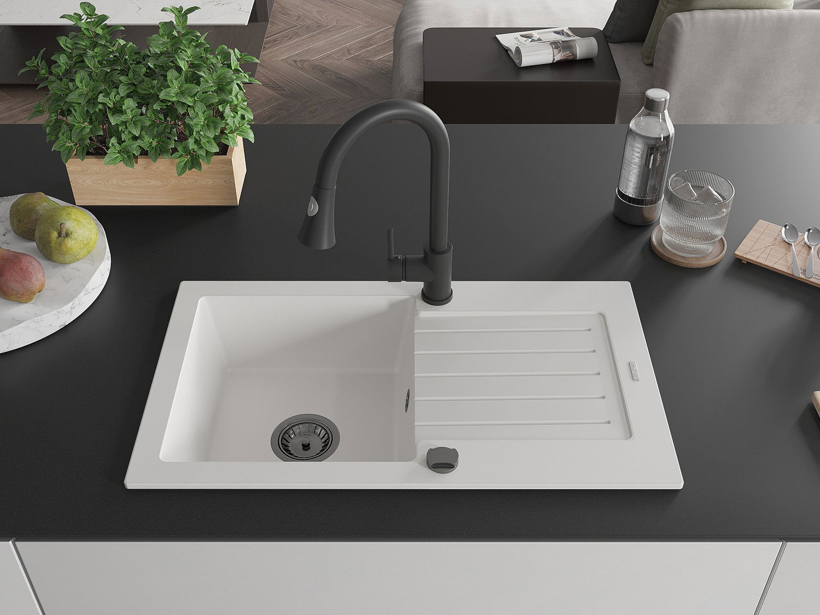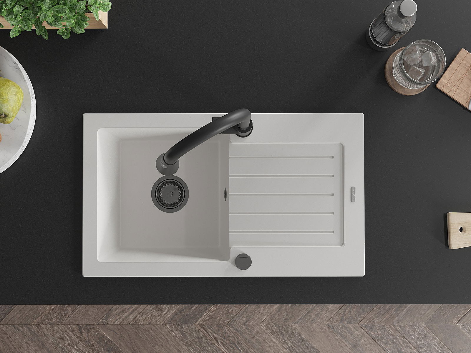 Mexen Pablo гранитна мивка с 1 камера с отцедник и кухненски смесител Elia,