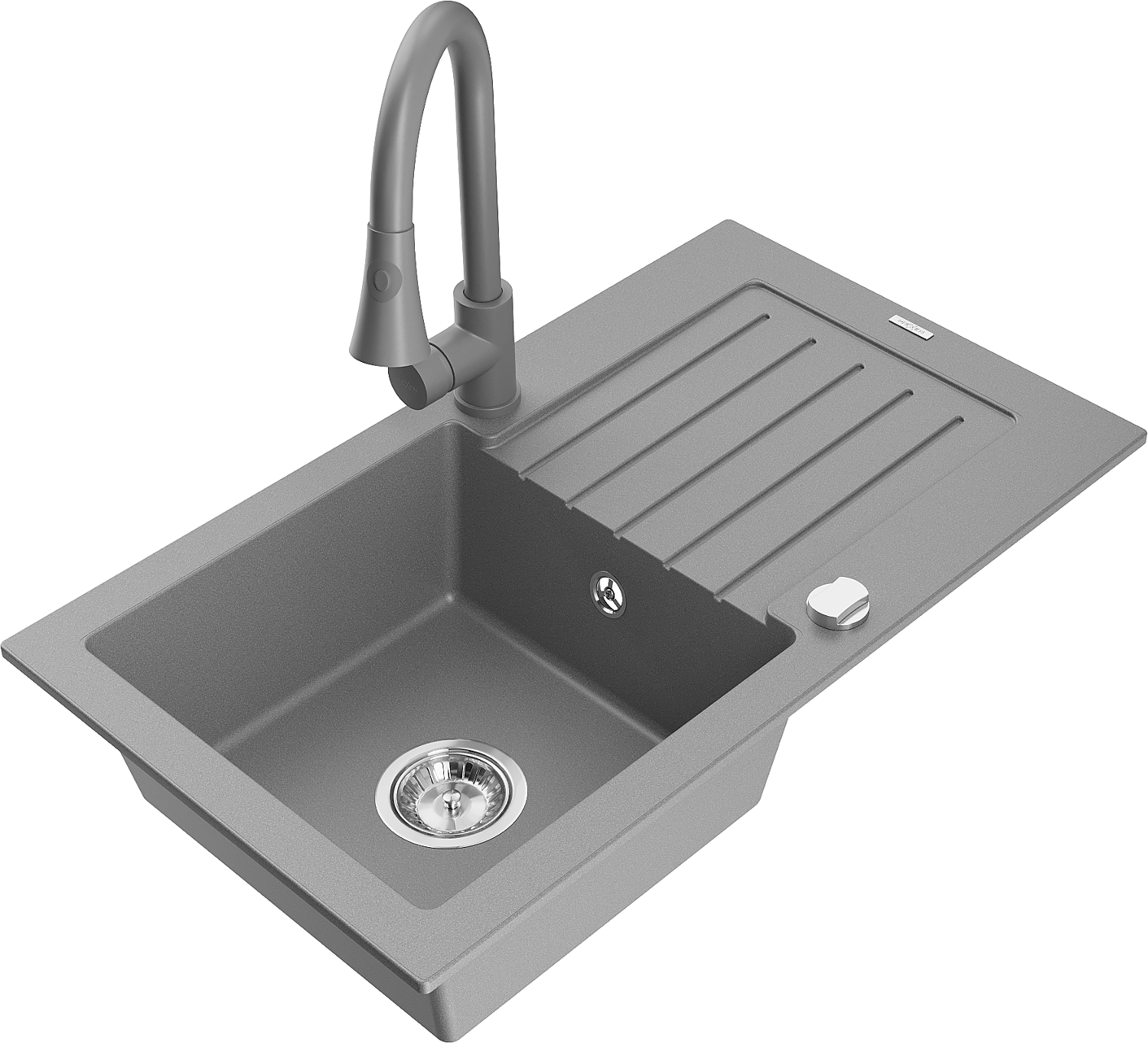 Mexen Pablo Гранитна мивка с една камера с отцедник и кухненски смесител Elia, сив - 6510-71-670101-71