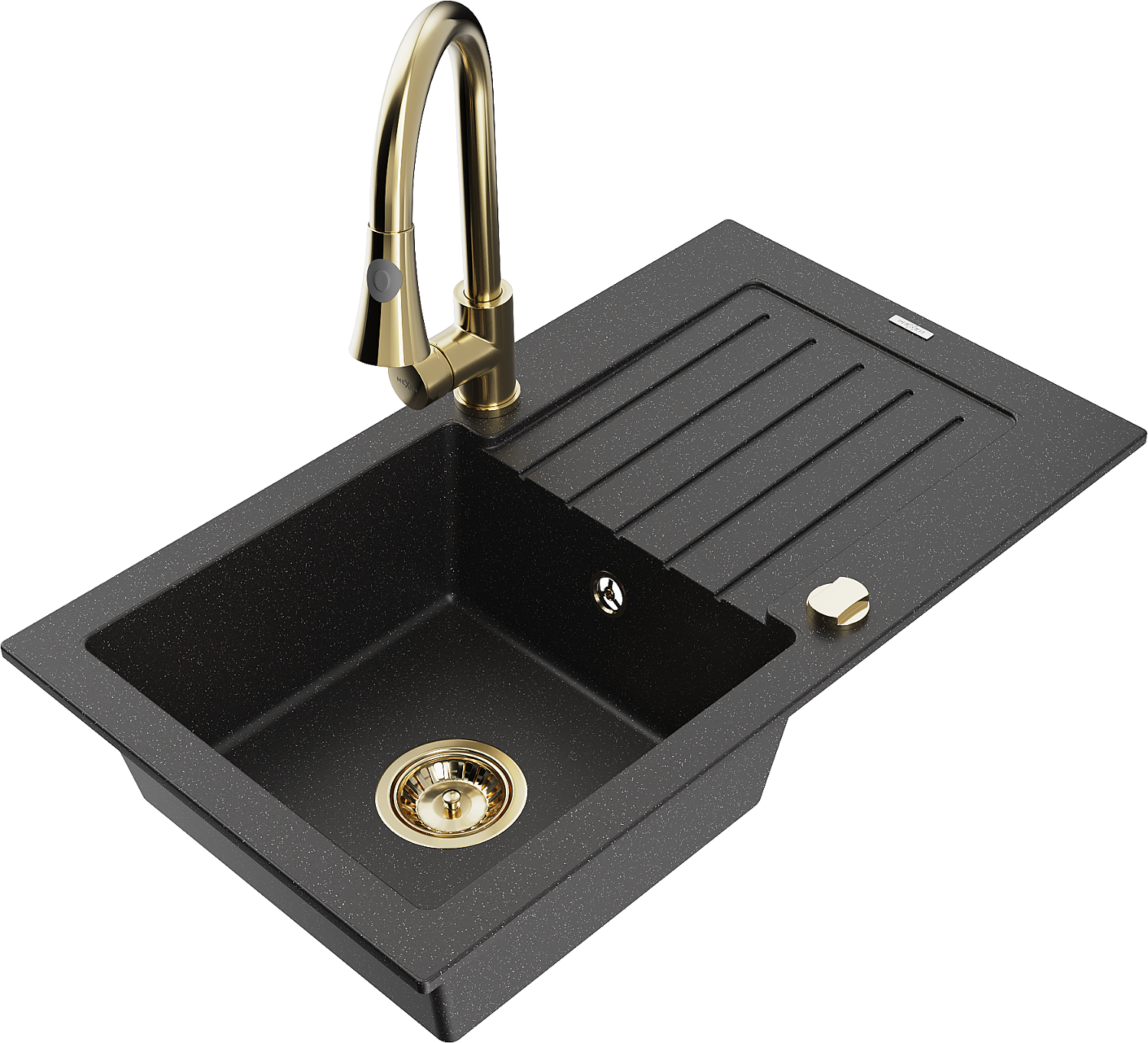 Mexen Pablo гранитна мивка с 1 корито с отцедник и кухненски смесител Elia,