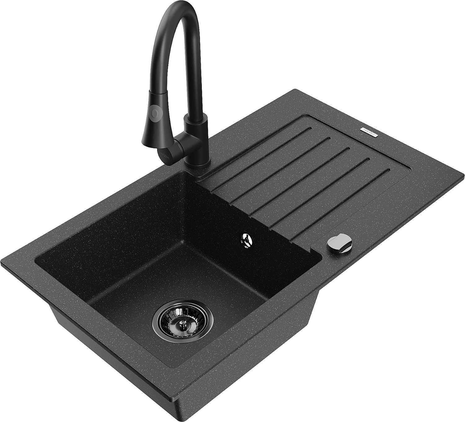 Mexen Pablo гранитна мивка с 1 отделение с отцедник и кухненски смесител Elia,