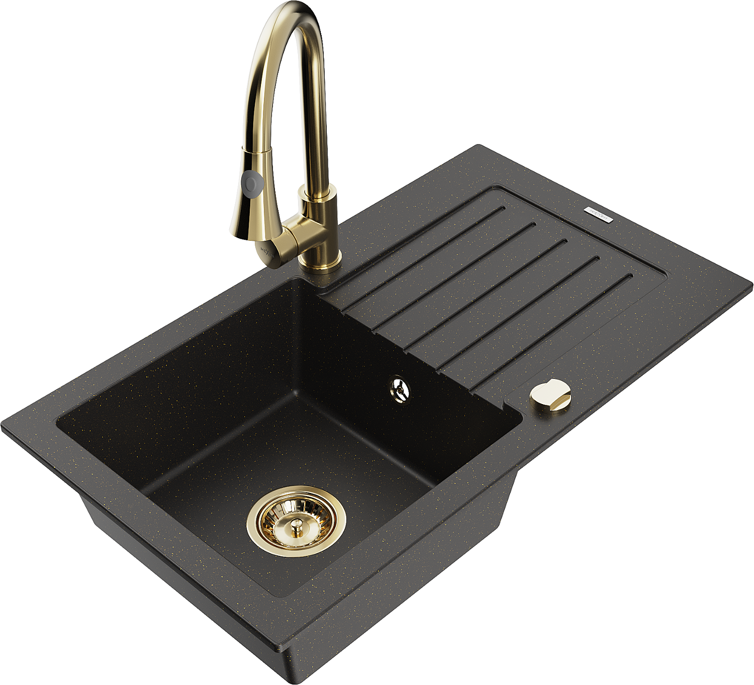 Mexen Pablo гранитна мивка с 1 камера и отцедник с кухненски смесител Elia,