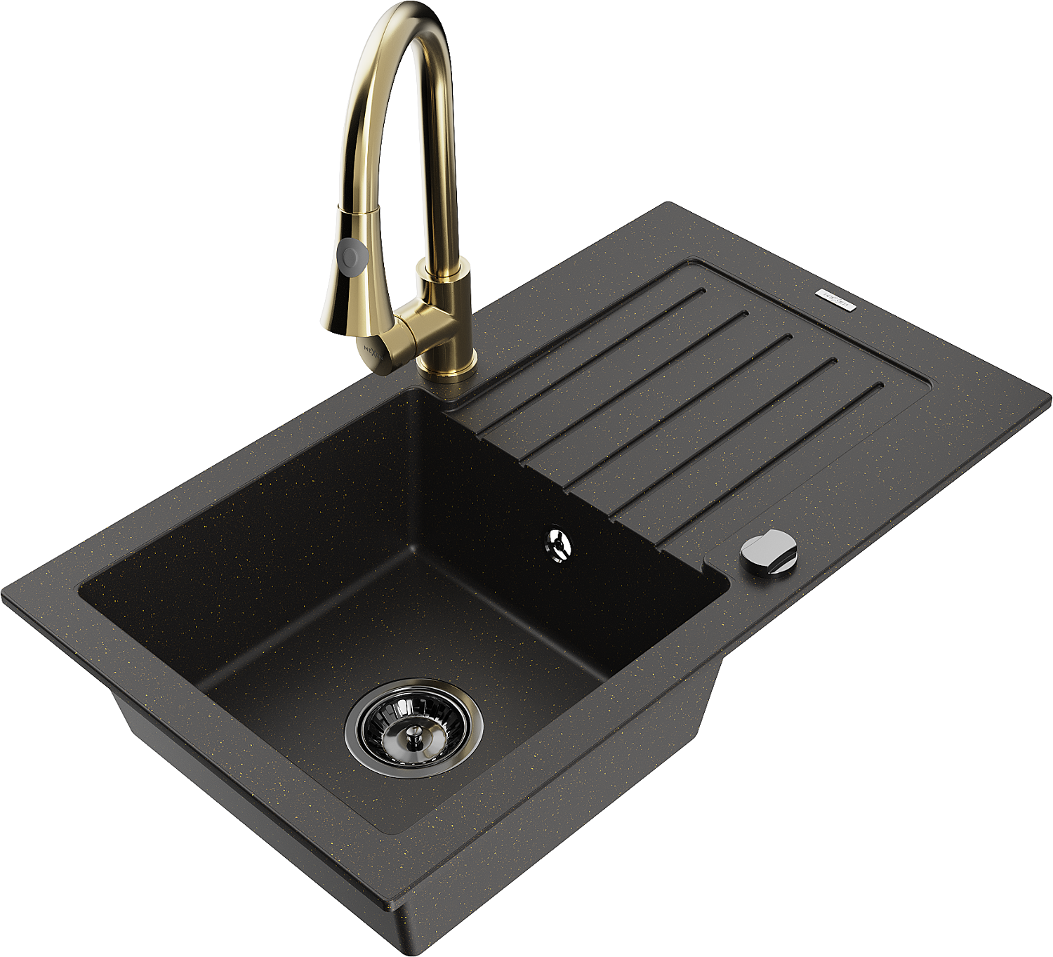 Mexen Pablo гранитна мивка с 1 отделение с отцедник и кухненски смесител Elia,