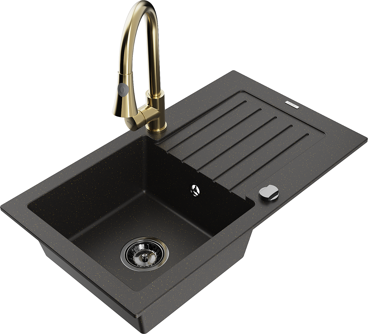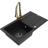 Mexen Pablo кухненска мивка гранитна, 1-компонентна с отцедник и кухненски смесител Elia, черен/златист металик - 6510-75-67010?