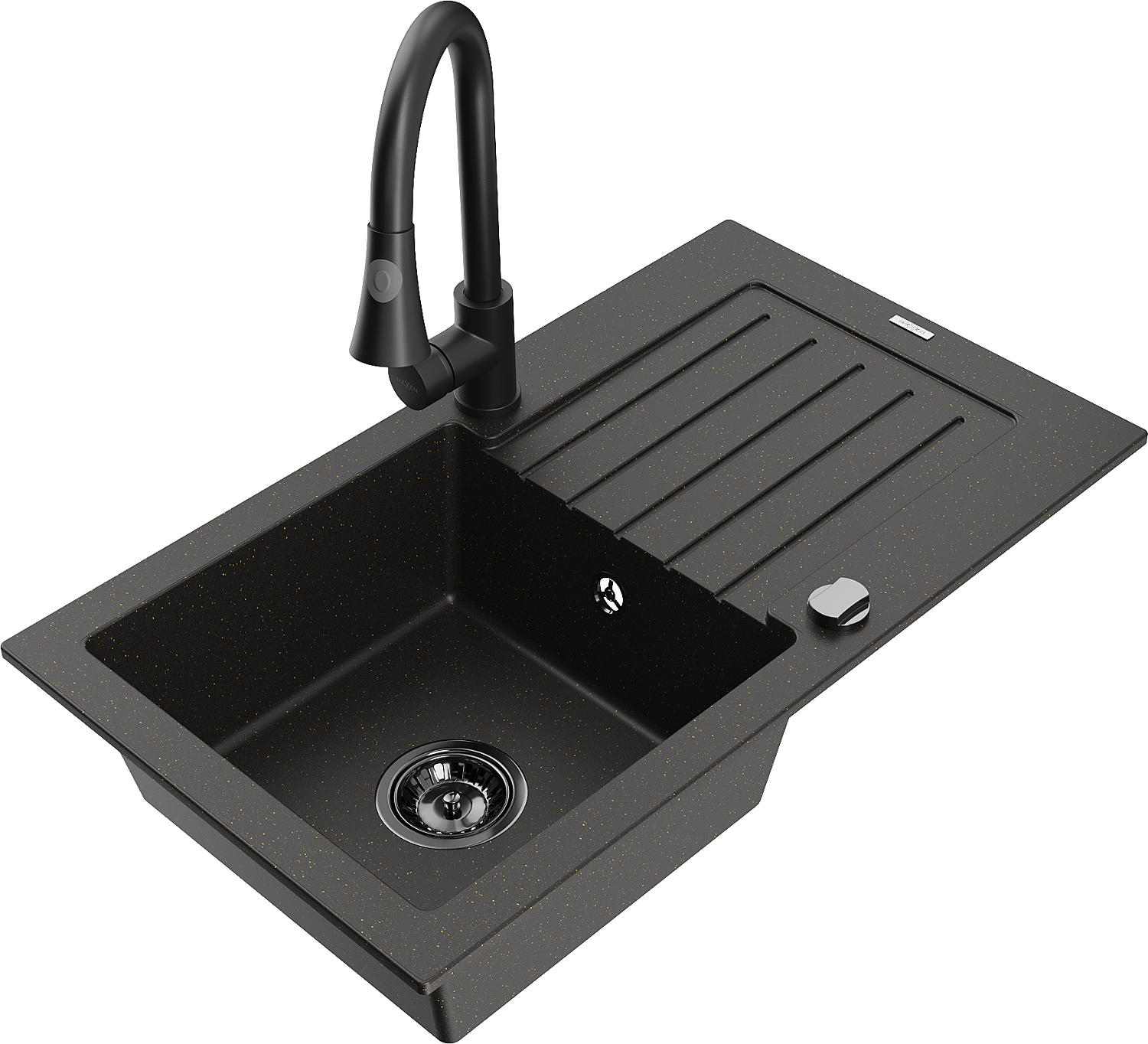 Mexen Pablo гранитна мивка с 1 камера с отцедник и кухненски смесител Elia,