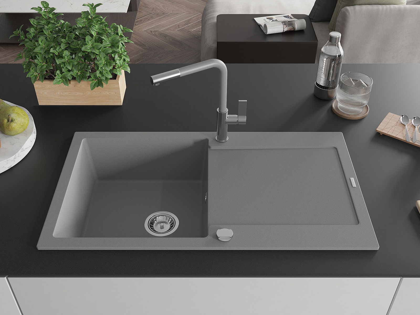 Мивката е направена от висококачествен гранит. Това е елегантно и най -вече практично допълнение към всяка кухня, независимо от нейния стил. Висококачествената и гранитна издръжливост осигуряват много години употреба.