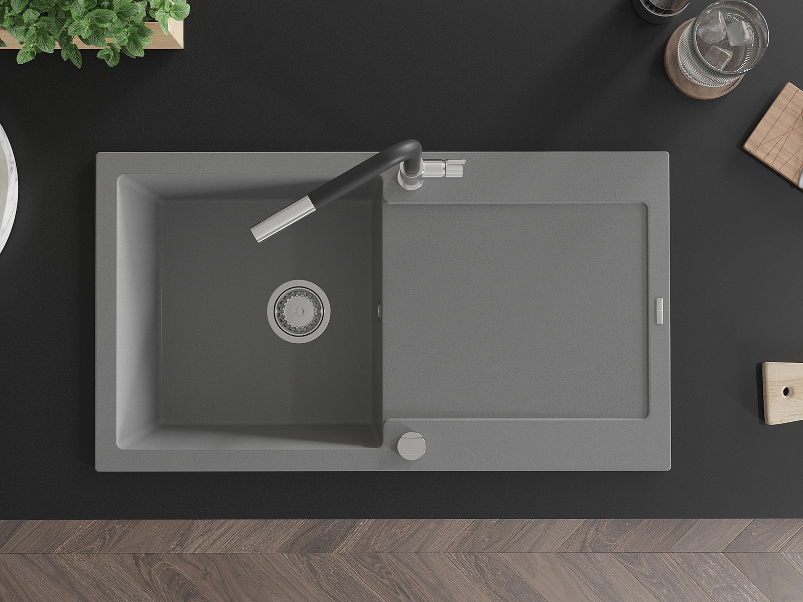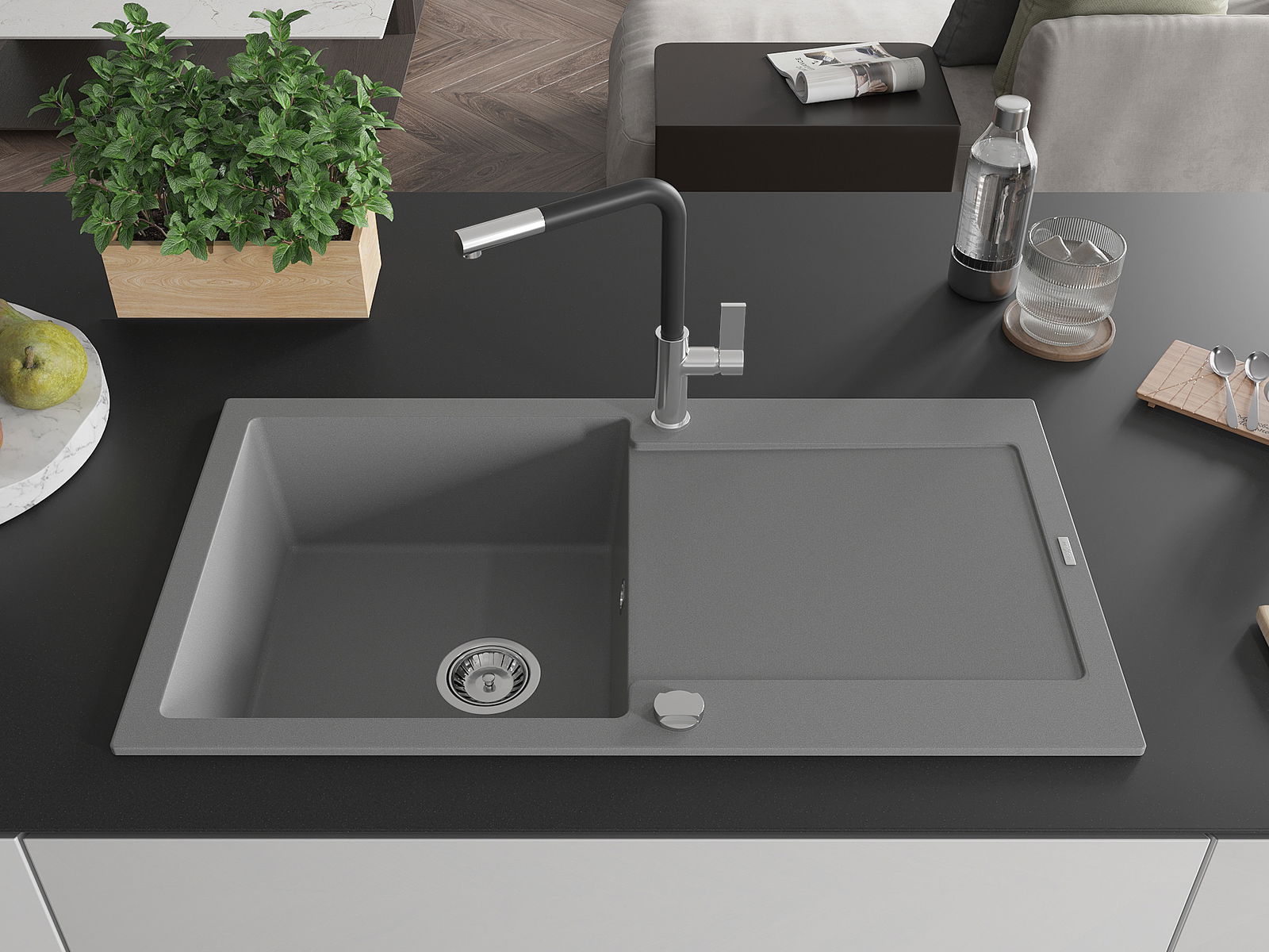 Мивката е направена от висококачествен гранит. Това е елегантно и най -вече практично допълнение към всяка кухня, независимо от нейния стил. Висококачествената и гранитна издръжливост осигуряват много години употреба.