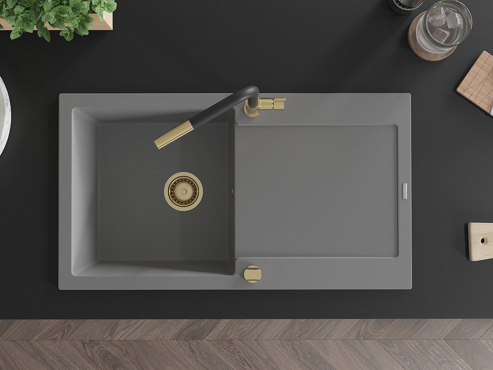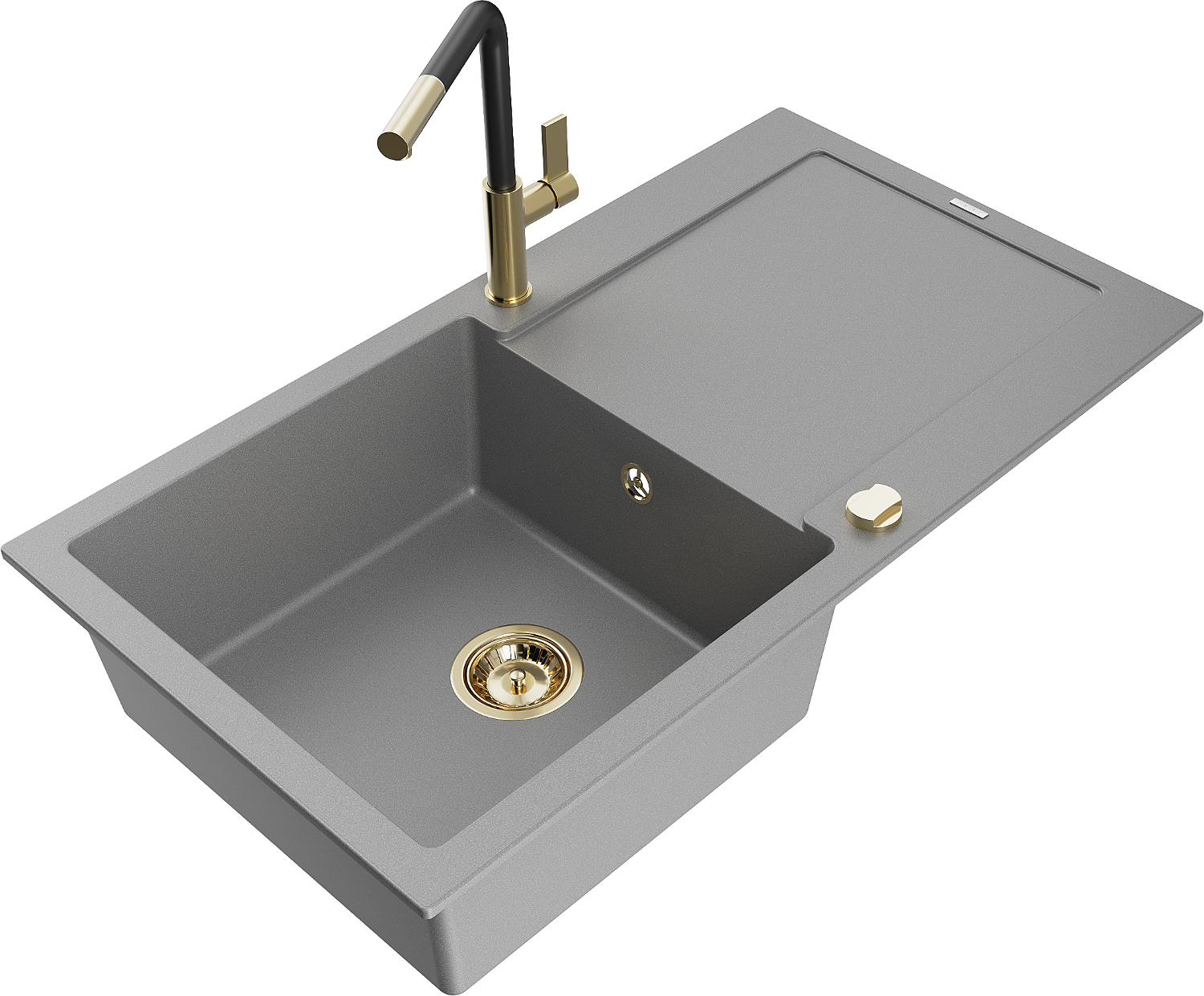 Mexen Leo гранитна мивка с една камера с отцедник и кухненски смесител Flora, сив - 6501-71-670401-57-G