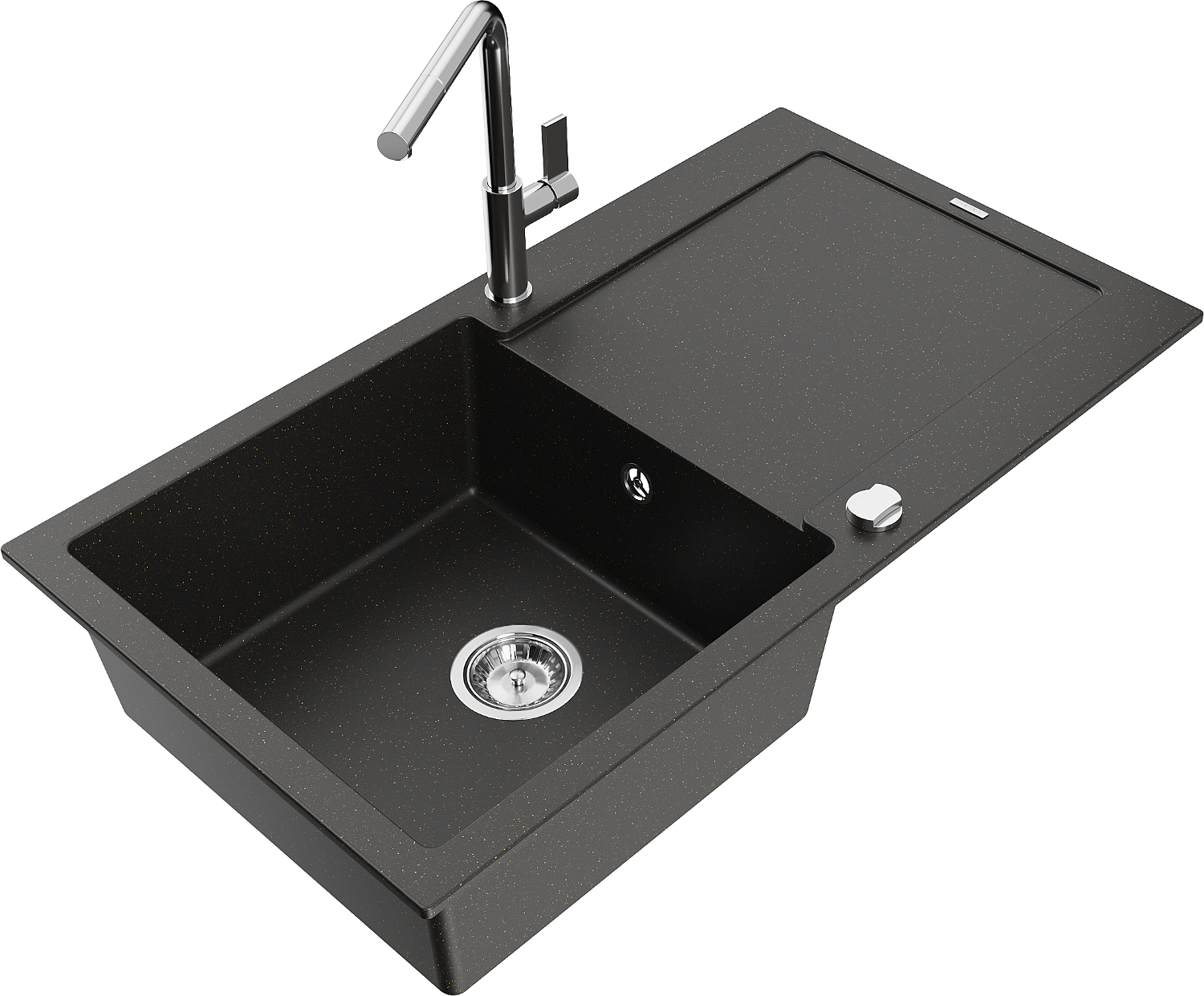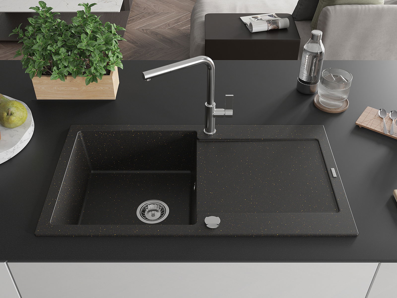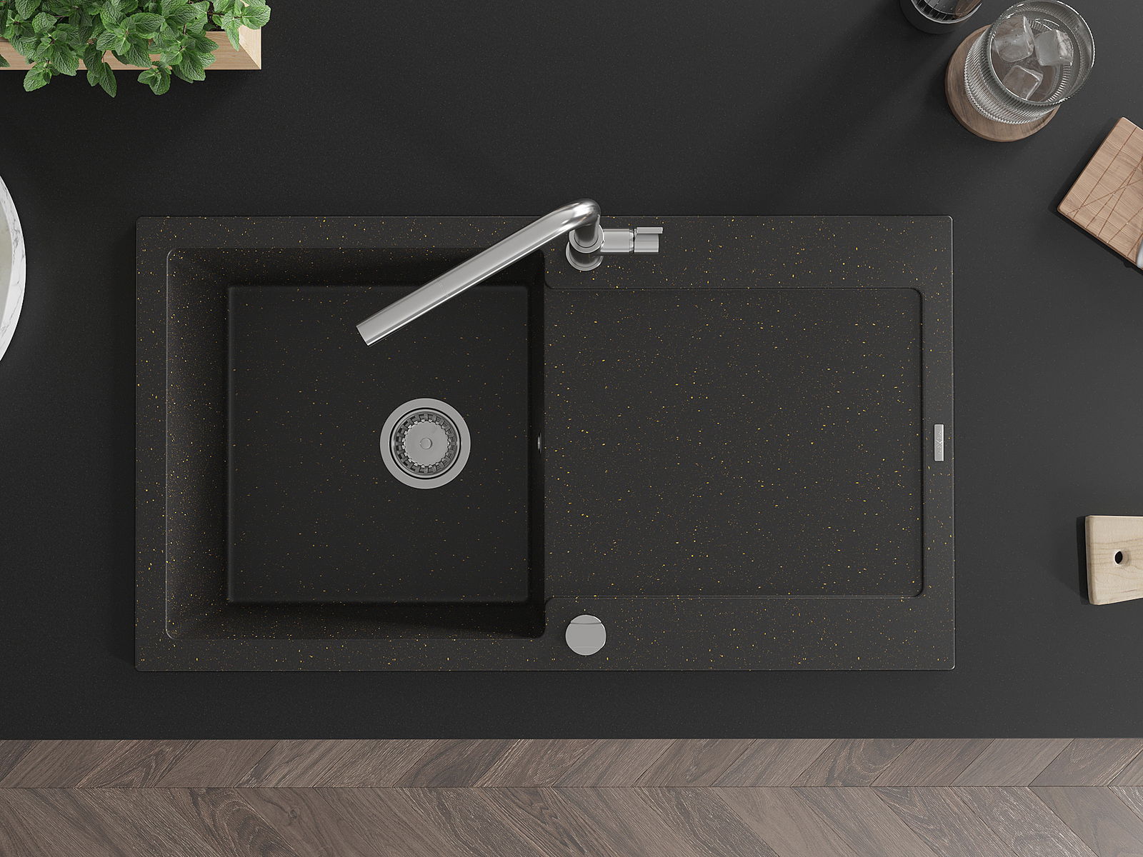 Мивката е направена от висококачествен гранит. Това е елегантно и най -вече практично допълнение към всяка кухня, независимо от нейния стил. Висококачествената и гранитна издръжливост осигуряват много години употреба.
