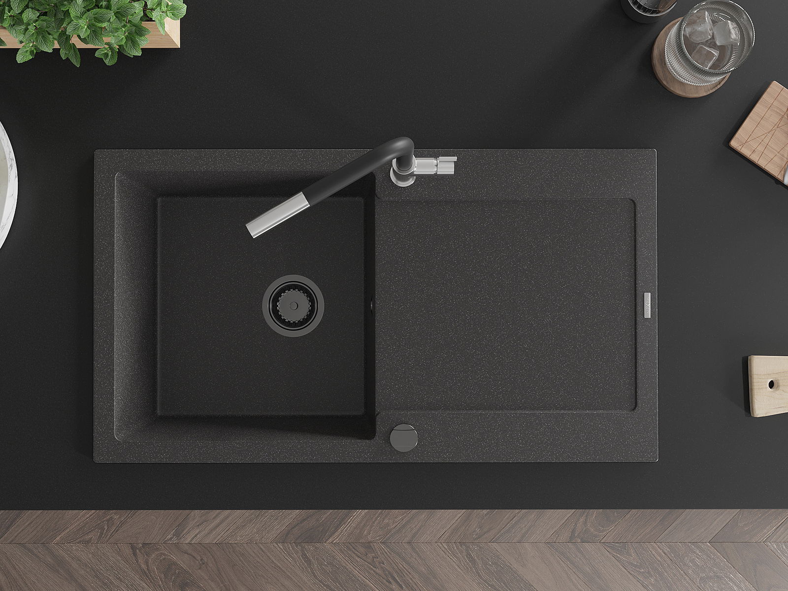Мивката е направена от висококачествен гранит. Това е елегантно и най -вече практично допълнение към всяка кухня, независимо от нейния стил. Висококачествената и гранитна издръжливост осигуряват много години употреба.