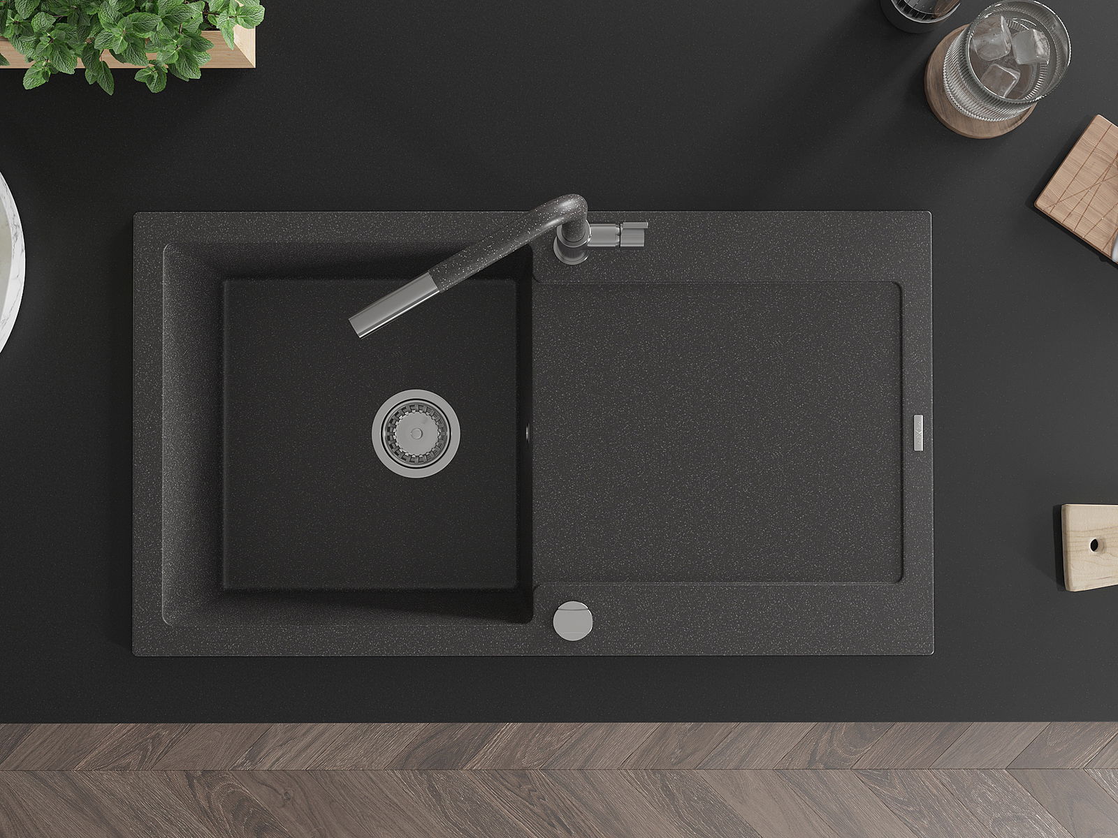 Мивката е направена от висококачествен гранит. Това е елегантно и най -вече практично допълнение към всяка кухня, независимо от нейния стил. Висококачествената и гранитна издръжливост осигуряват много години употреба.
