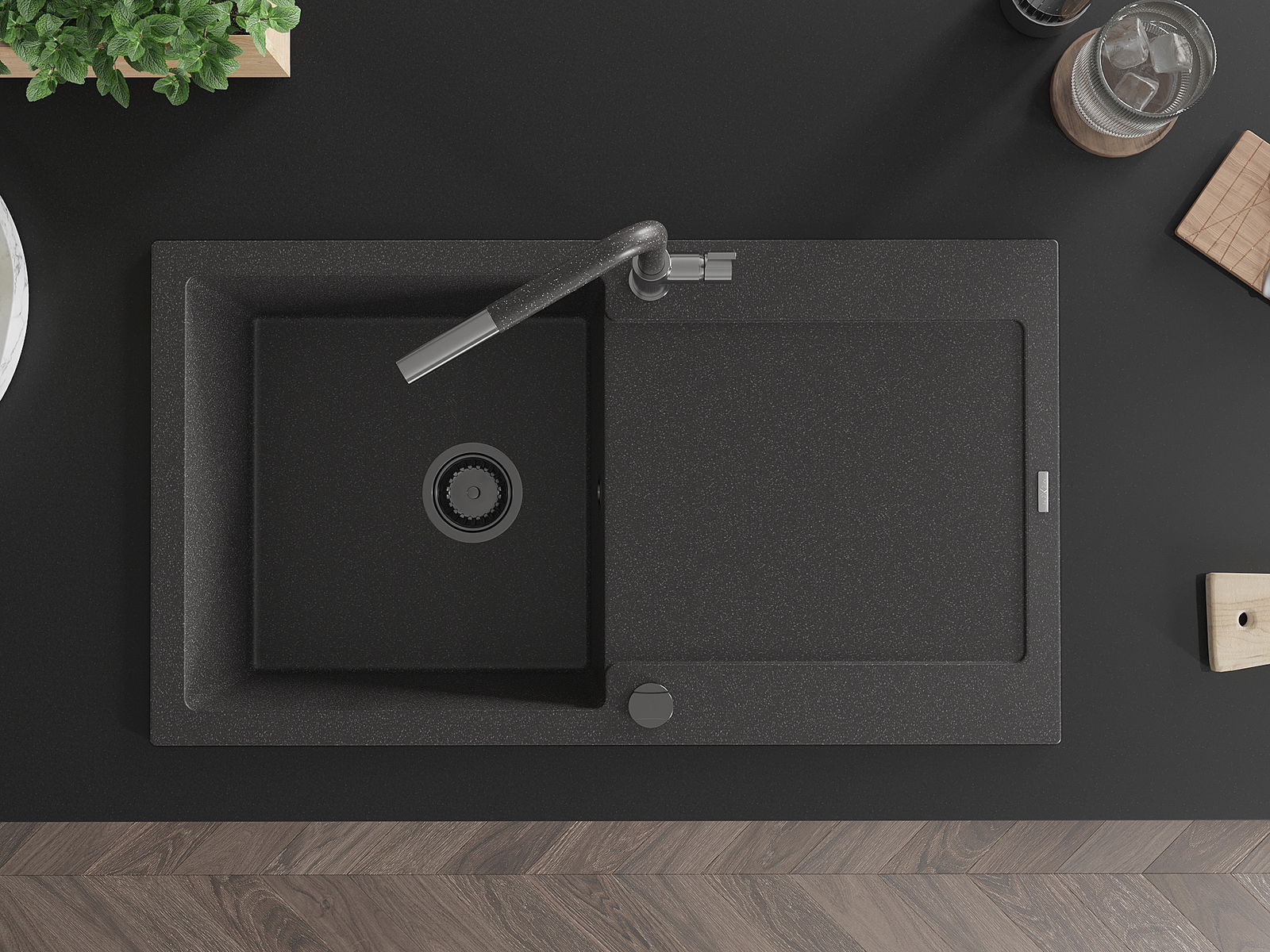 Мивката е направена от висококачествен гранит. Това е елегантно и най -вече практично допълнение към всяка кухня, независимо от нейния стил. Висококачествената и гранитна издръжливост осигуряват много години употреба.