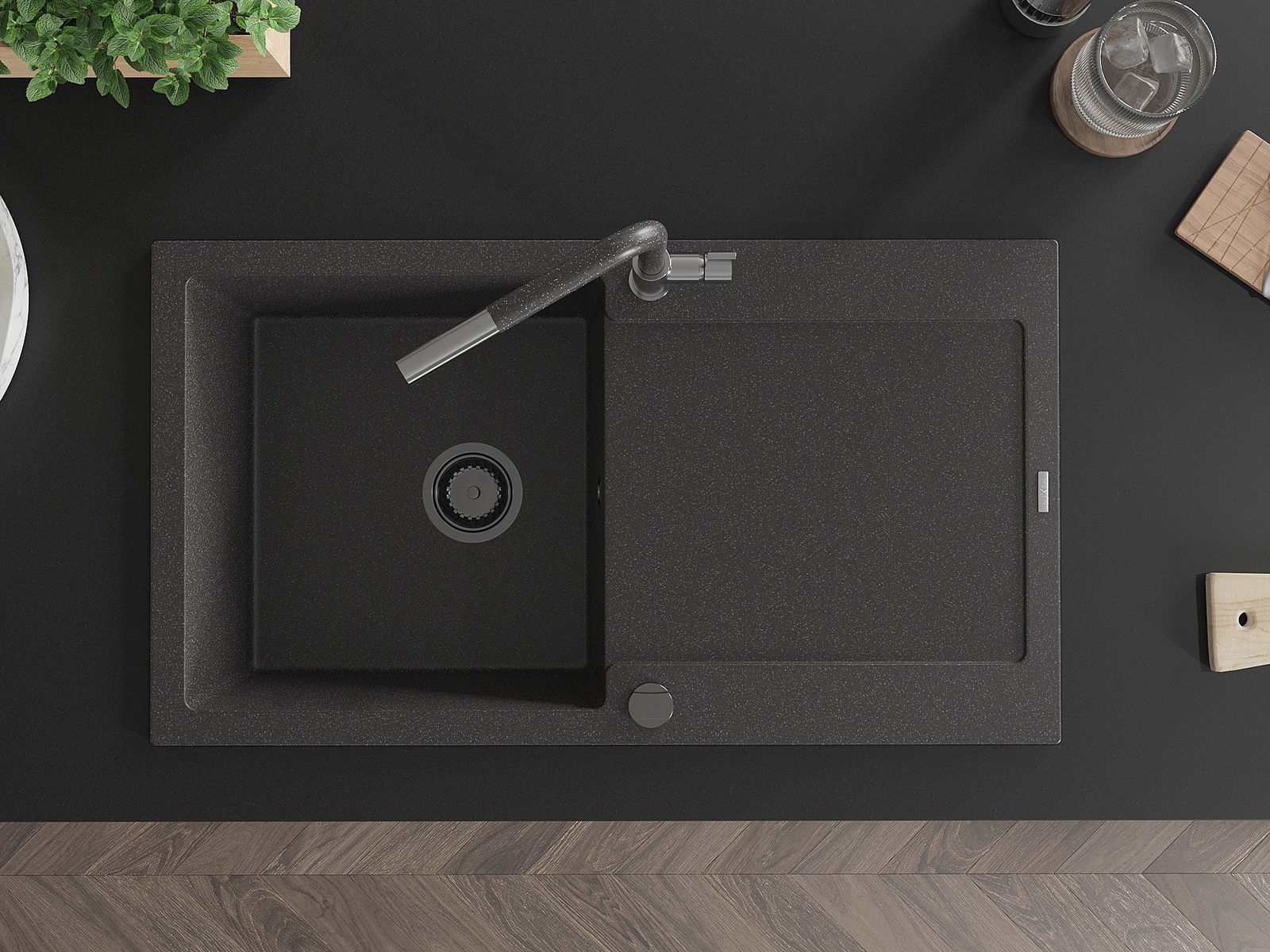 Mexen Leo гранитна мивка с 1 отделение и сушилник с кухненски смесител Flora,
