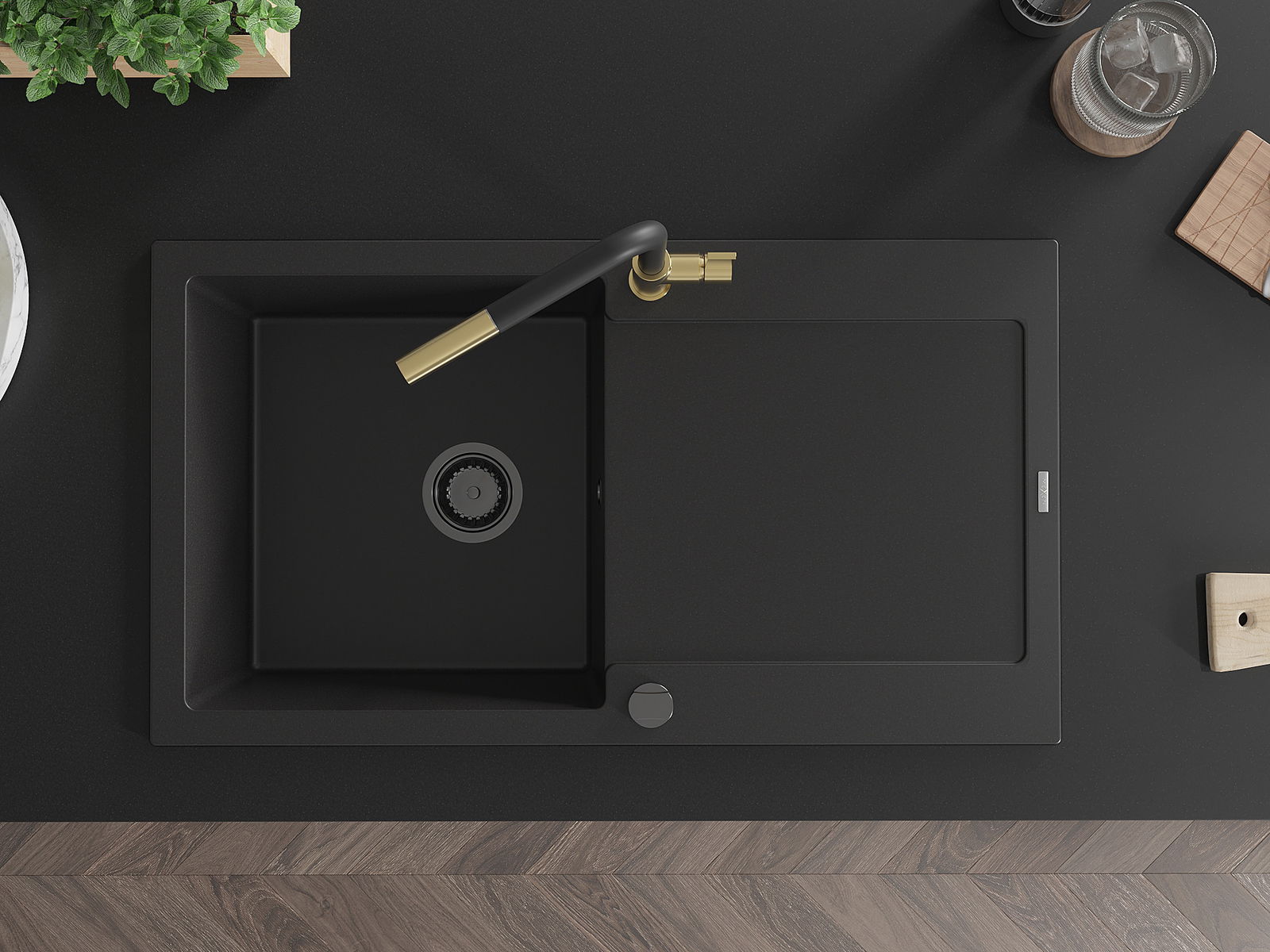 Mexen Leo мивка с отцедник и кухненски смесител Flora, черен - 6501-77-670401-57-B