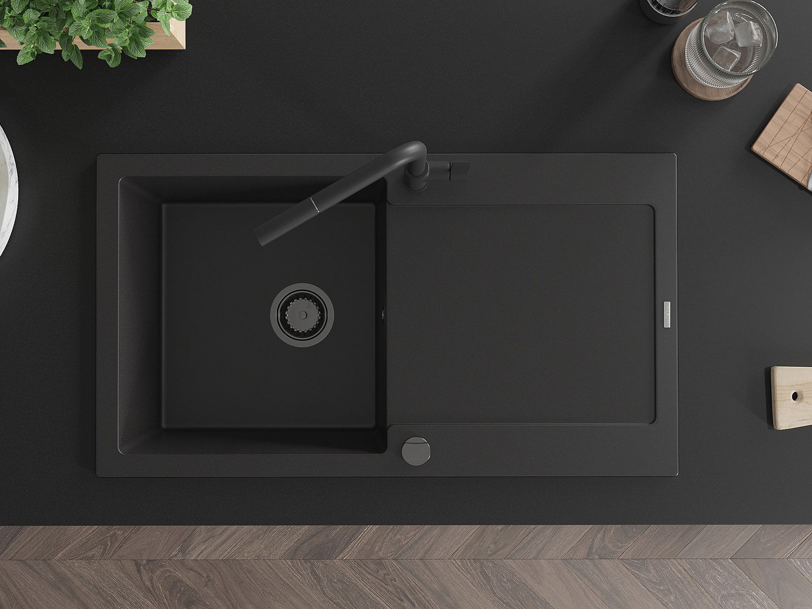 Mexen Leo гранитна кухненска мивка с 1 камера и отцедник с кухненски